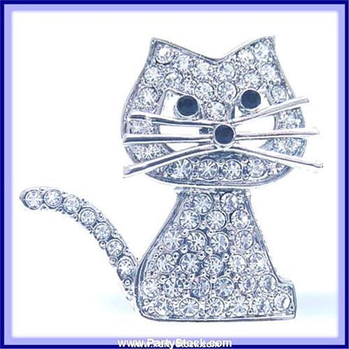 KITTY CAT PIN BROOCH 24K GOLD SWAROVSKI CRYSTALS