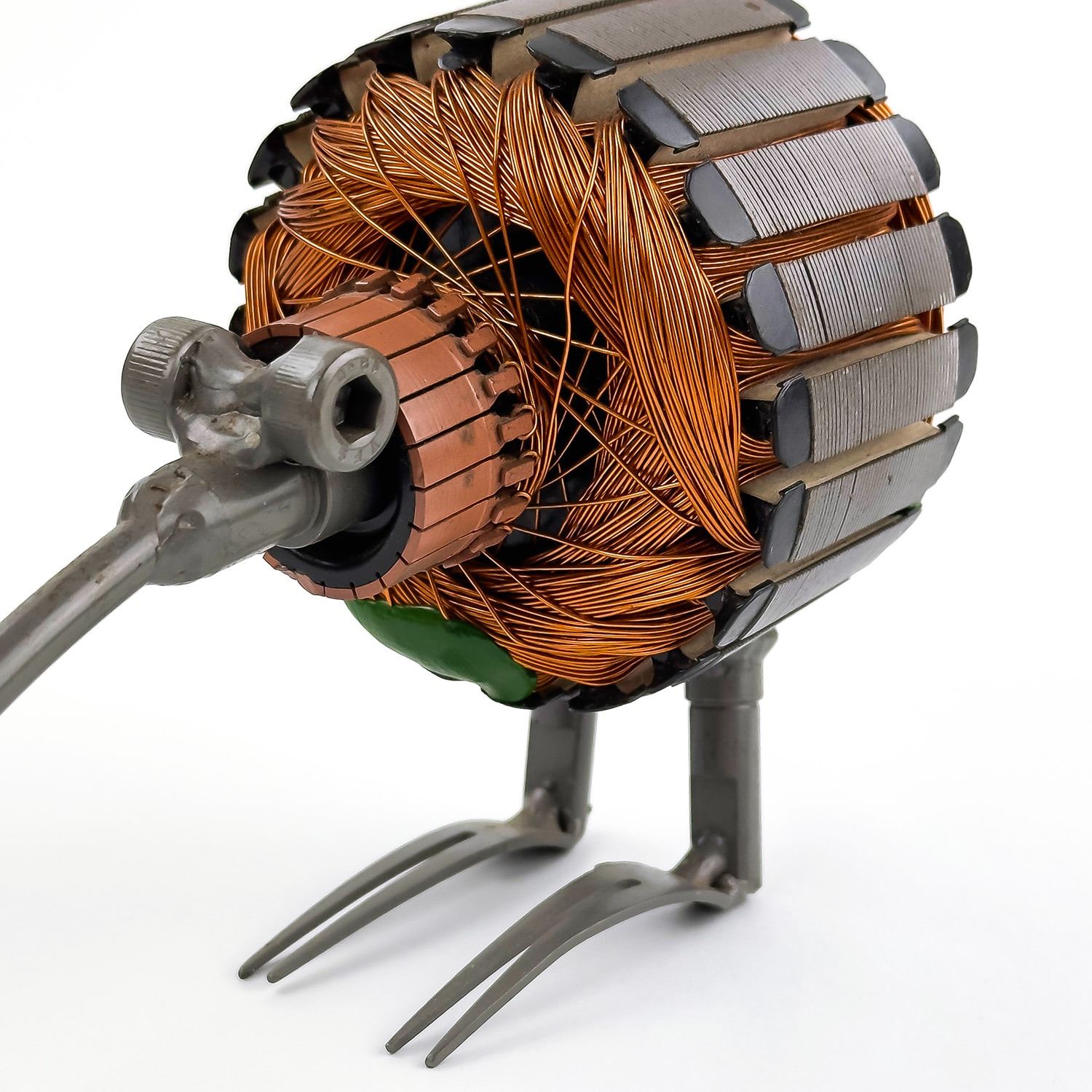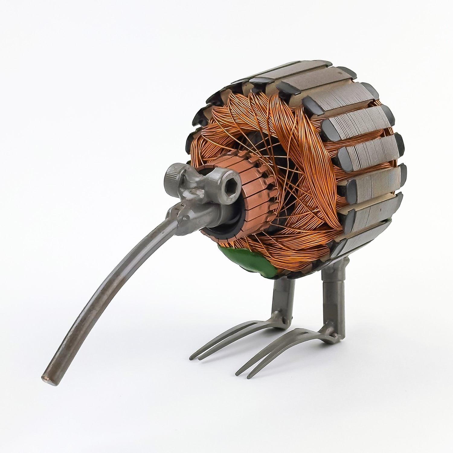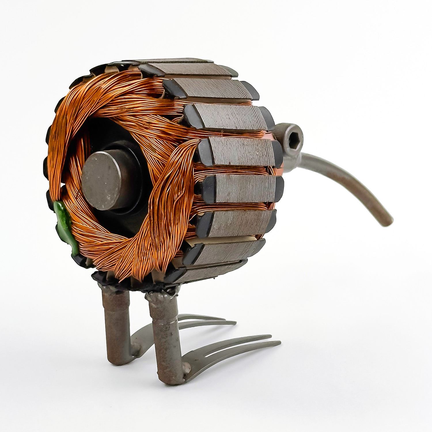 #8004 - MOTOR SCULPTURE THAT LOOKS LIKE A NEW ZEALAND KIWI BIRD. IT IS UNSIGNED AND PERHAPS ONE-OF-A-KIND. HOME, BAR OR OFFICE DECOR ANIMAL BIRD PAPERWEIGHT SCULPTURE. IT WEIGHS 1.313 KILOGRAMS (2.90 POUNDS) - MEASURES: 7” (18 CM) LONG BY 4.5” (11.5 CM) HIGH AND A MOTOR DIAMETER OF 3.125” (8 CM)