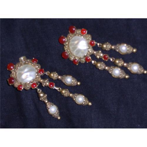 A pair of vintage Kenneth J Lane signed earrings in excellent condition. Bold and beautiful with large baroque style faux pearls and coral.