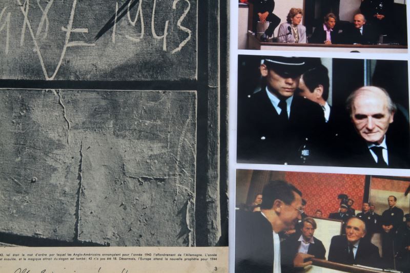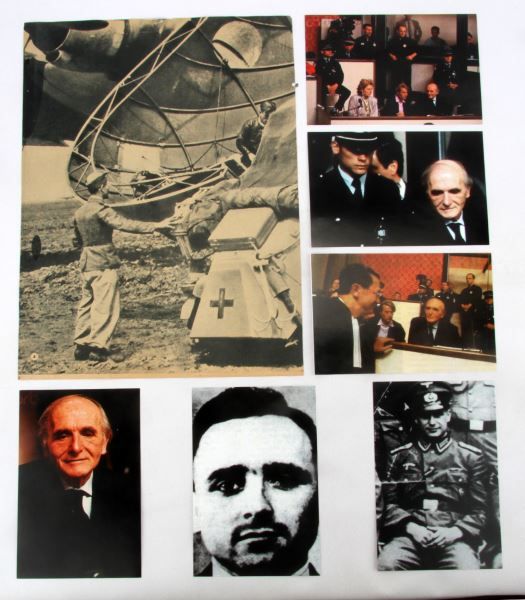 Signature is on a 1944 French magazine photo, issued while France was still under German occupation, showing a wall with the chalked slogan: "1918 - 1943".Barbie signs his alias "Klaus Altmann" and dates his signature "17.12.86". marginal tears and some soiling at one corner, else very good. With five 4" x 6" photos of Barbie during the war and on trial. This lot has a reserve.