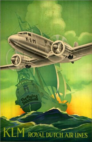 KLM, ROYAL DUTCH AIRLINES. (1940 CA.). 100x66cm. (40x26in). Litografía. B. Sobre papel japón.