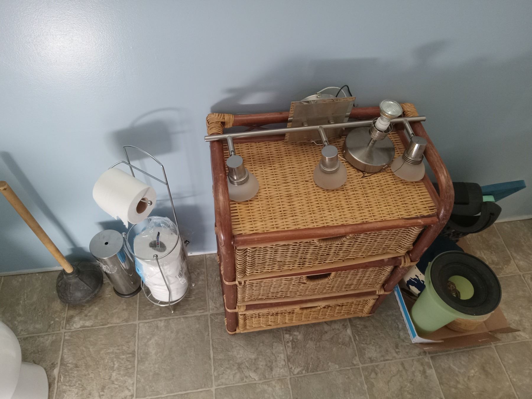 KNEE PADS, CANNISTERS & MISC. Assorted HOUSE & BATHROOM ITEMS