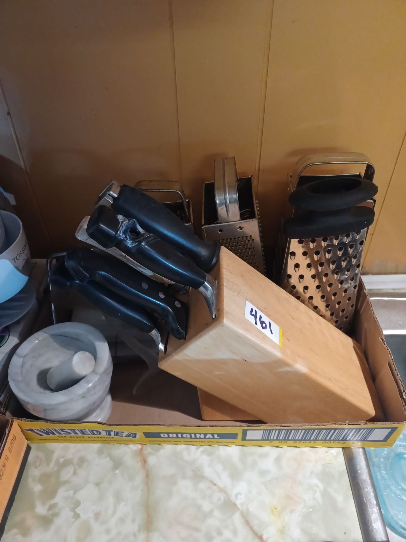 KNIFE BLOCK C/W CHEESE GRATER, BISEL AND MORTAR