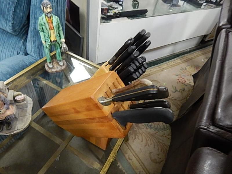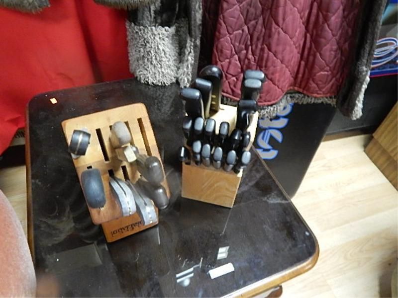 KNIFE BLOCK & KNIVES - 2 TOTAL
