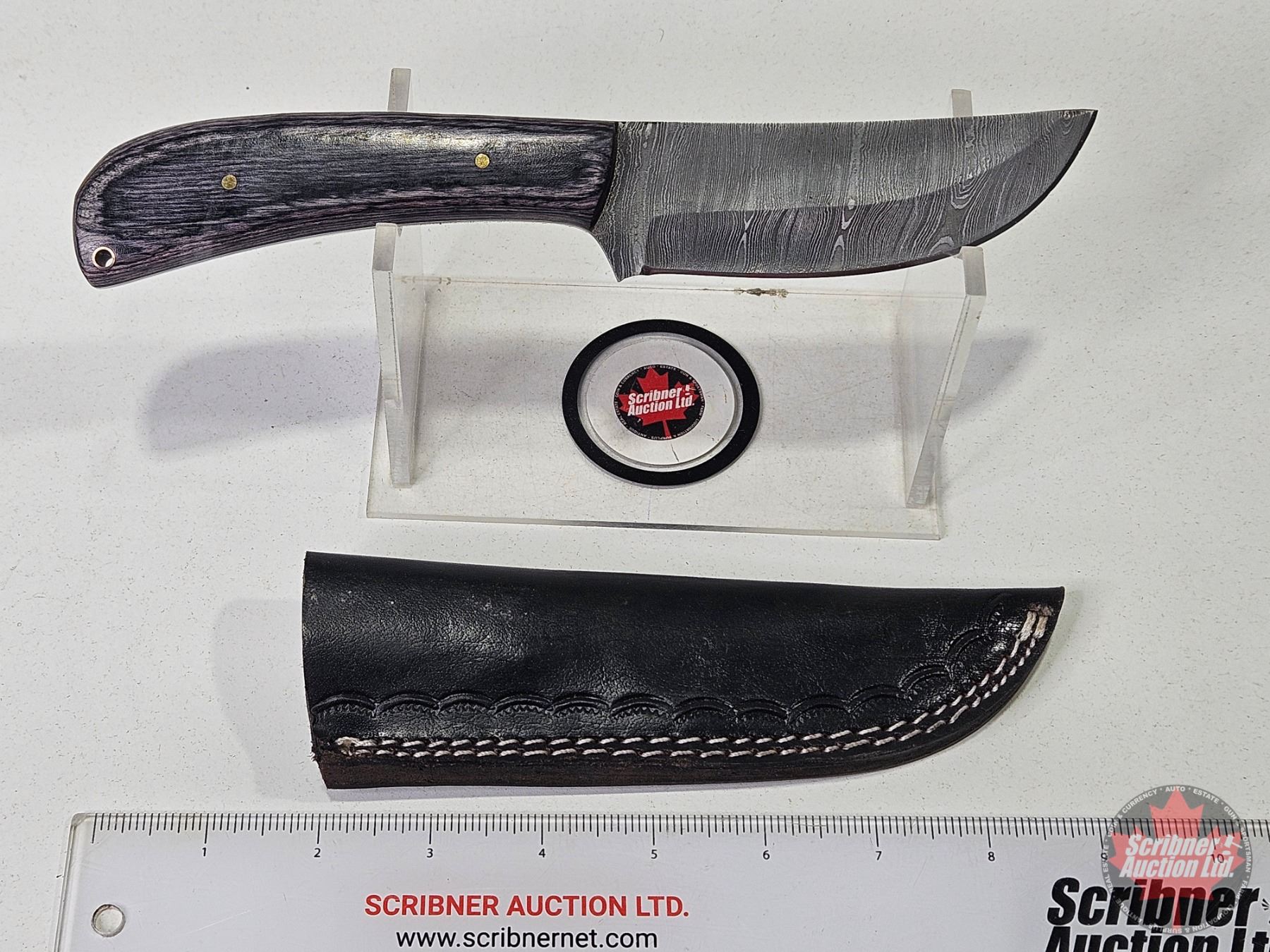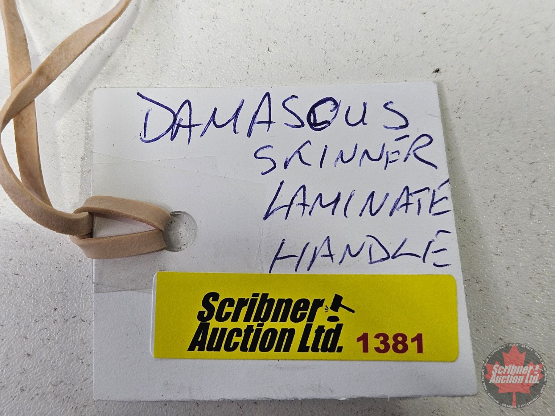 KNIFE : w/Sheath (Consignor Tag ~ Damascus Skinner : Laminate Handle)