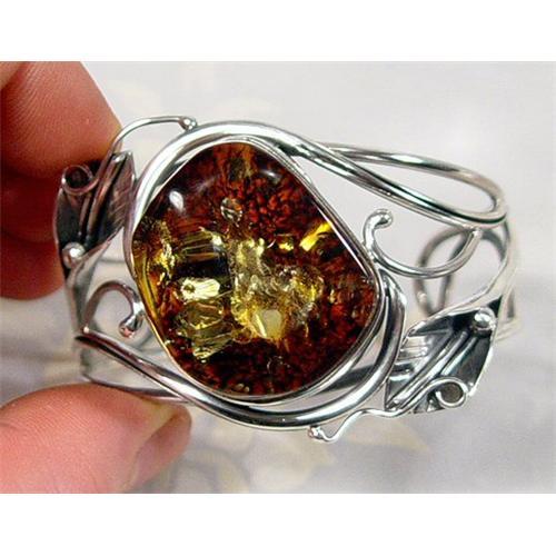 Created by the finest Polish designers, inspired by the awesome beauty of some of the most prestine Baltic amber and the results are captivating as the photos so clearly illustrate. This is a big and bold piece of jewelry of magnificent porportions. The bracelet measures 39mm in height and for those not familiar with metric 25mm=1". The amber measures 34x30x18mm. The inside measurment is 5.5" with a 1.5" opening ... Destined to quickly become your very favorite accessory OR a perfect piece of jewelry to give to a loved one....