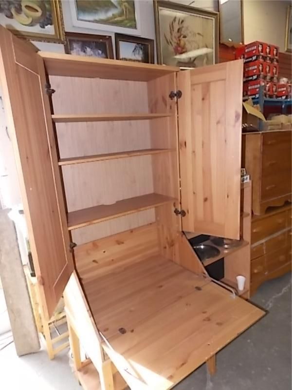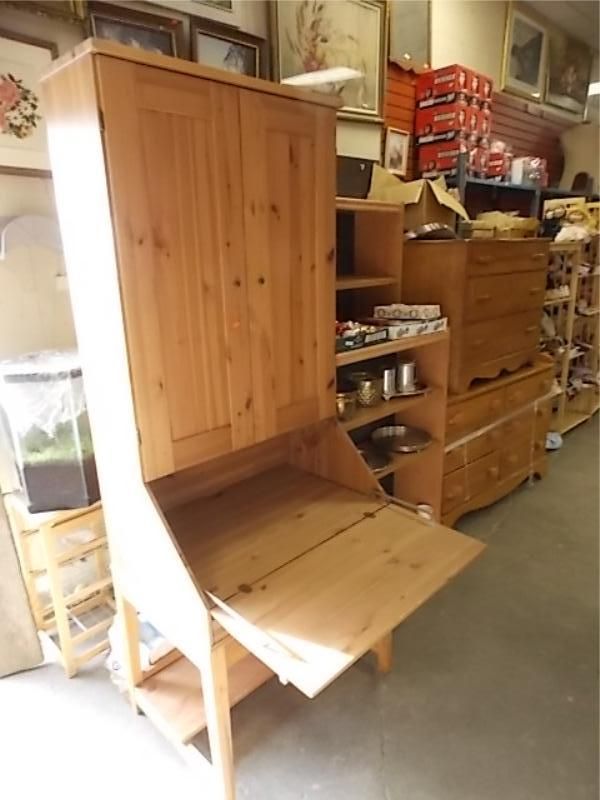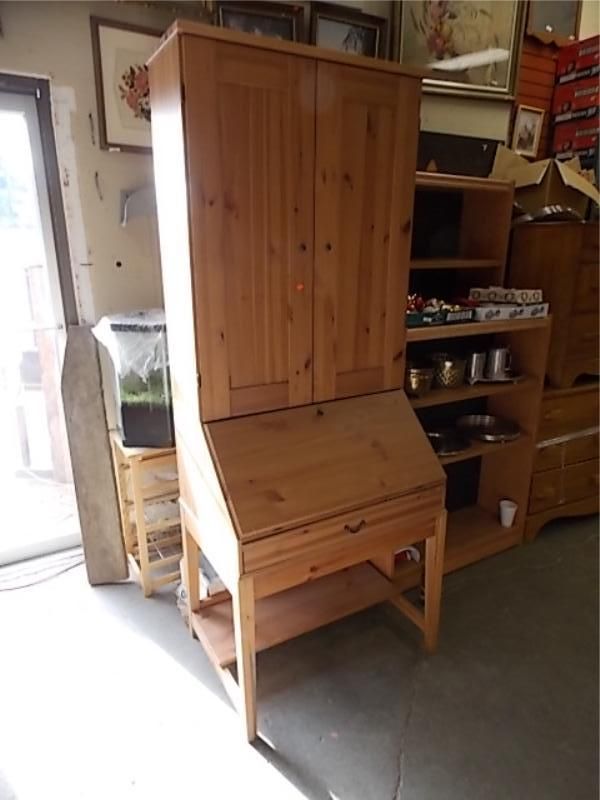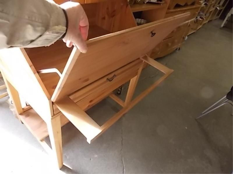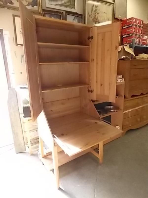 KNOTTY PINE DROP FRONT DESK WITH BUILT IN HUTCH WITH 2 DOORS