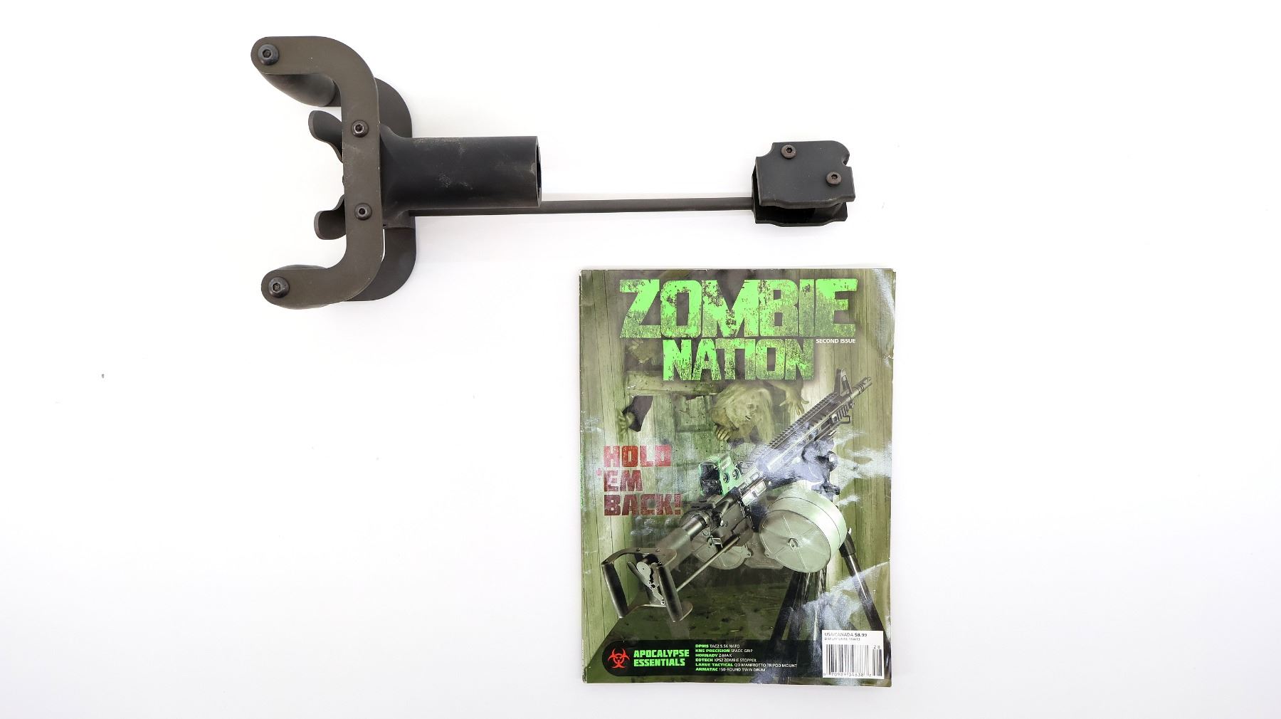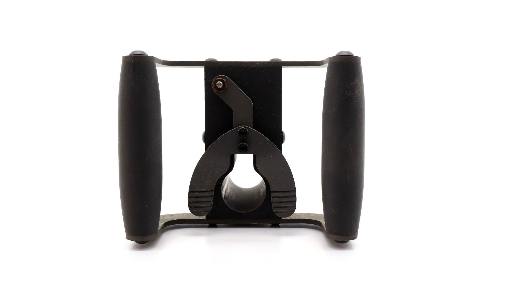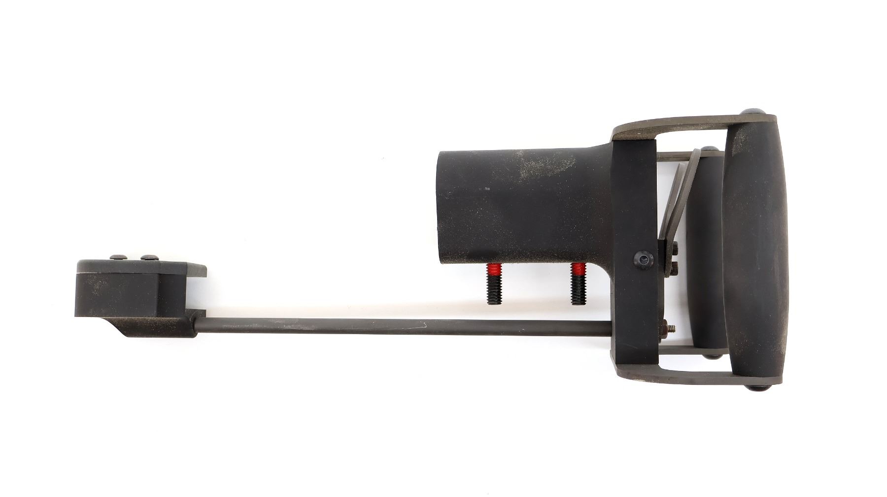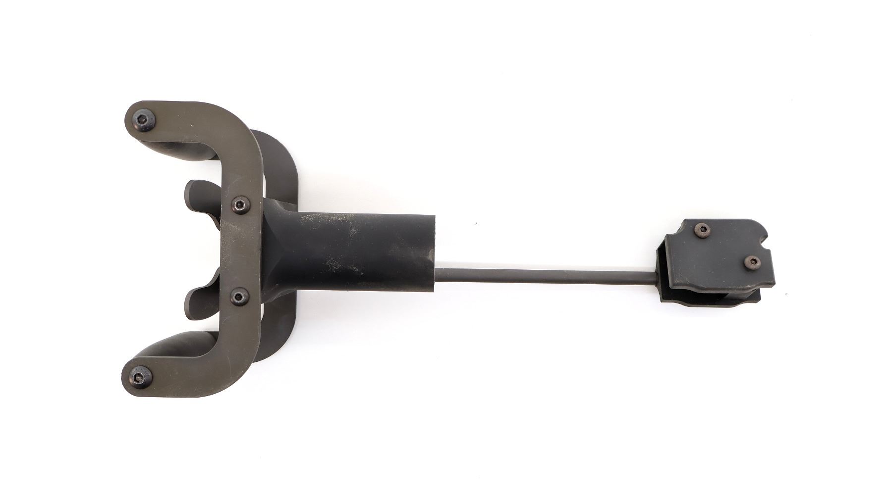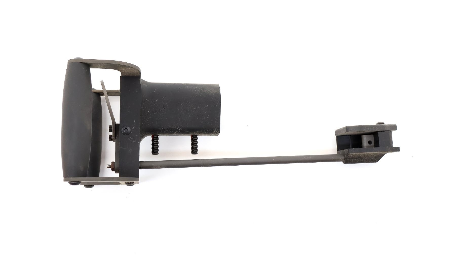 (1) SPADE GRIP ASSEMBLY, APPEARS COMPLETE, STEEL & ALUMINIUM CONSTRUCTION, UNMARKED, OVERALL LENGTH APPROX. 13", WITH INFORMATION. MAY REQUIRE FITTING. SEE PHOTOS.