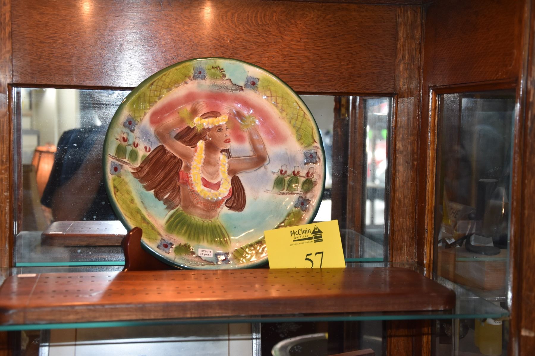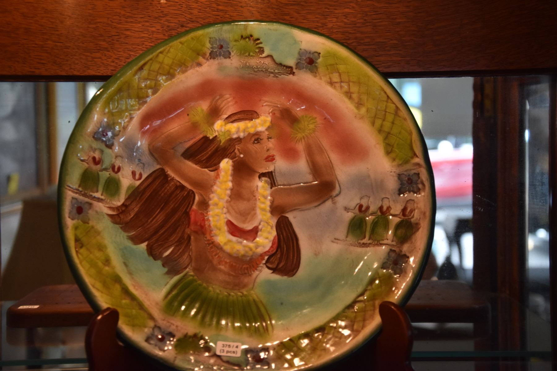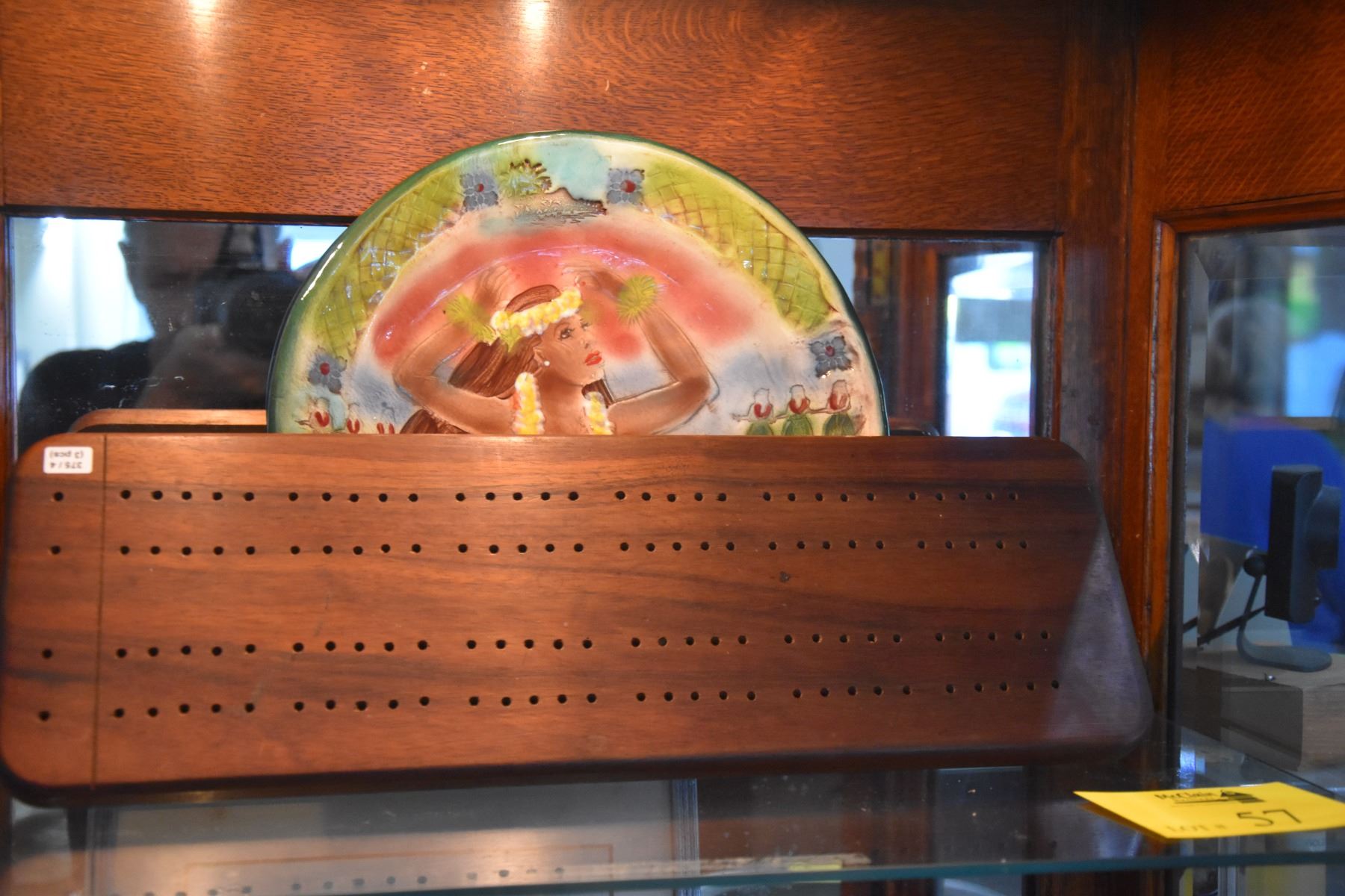 KOA CRIBBAGE BOARD & CERAMIC HULA GIRL PLATE BY KANI OF HAWAII (2 PCS)