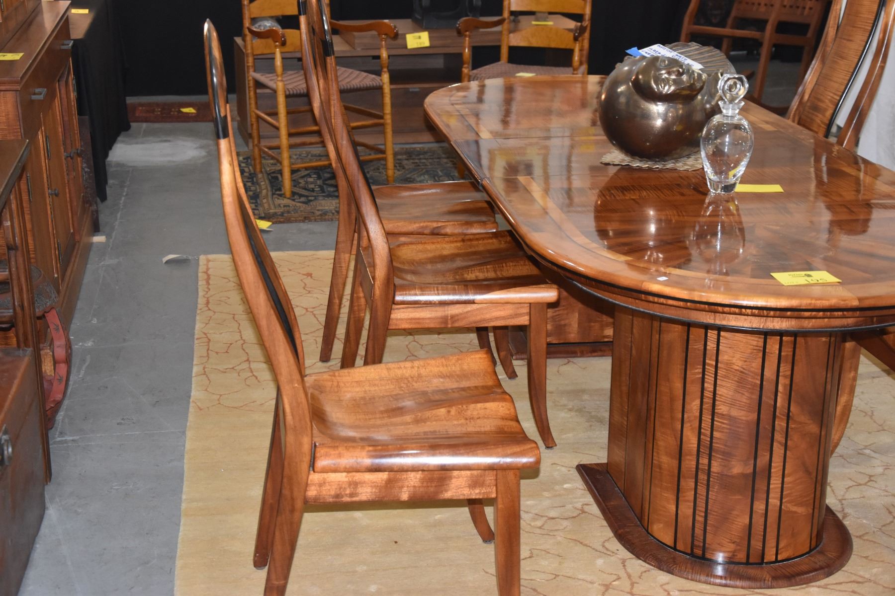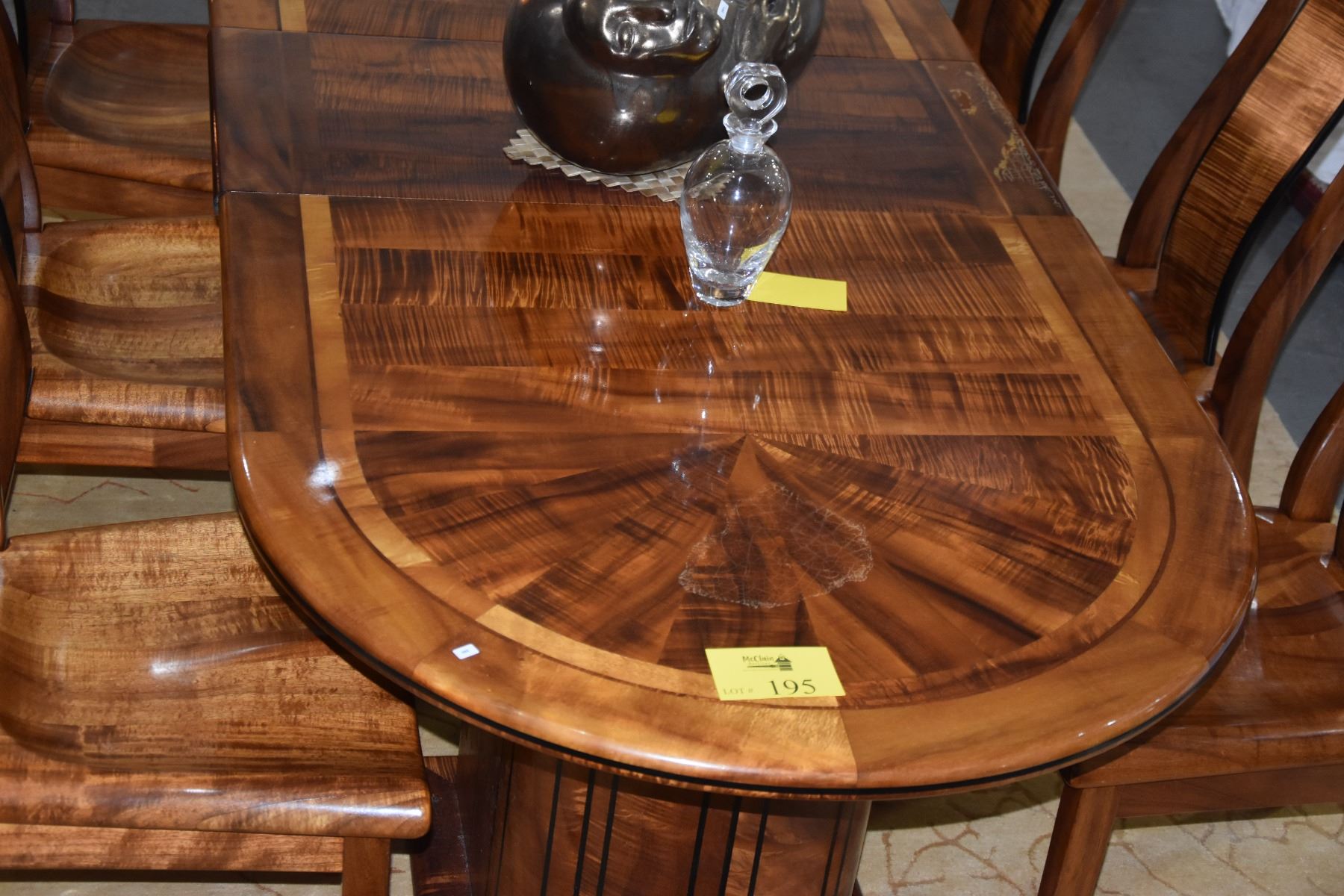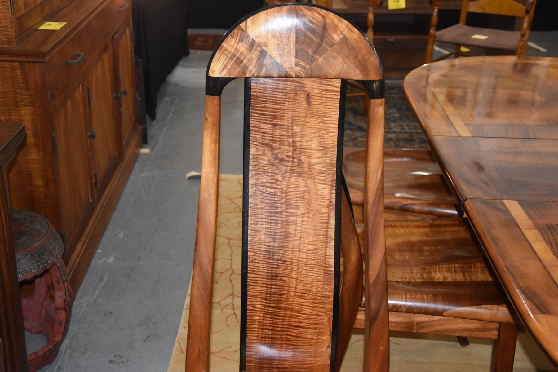 KOA & EBONY INLAY DINING TABLE W/1 LEAF & 6 CHAIRS BY DAVID LEFELL (94" X 39 1/2") (8 PCS)