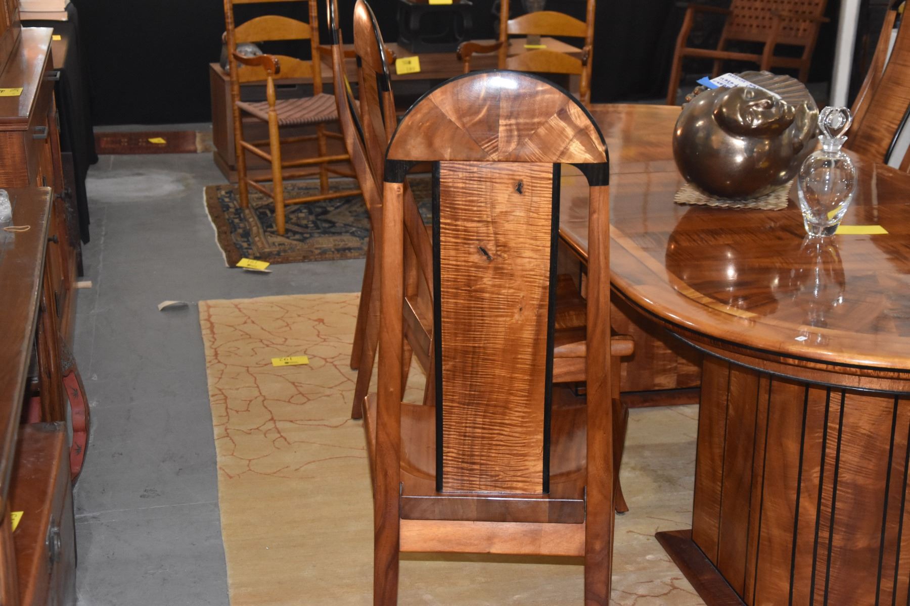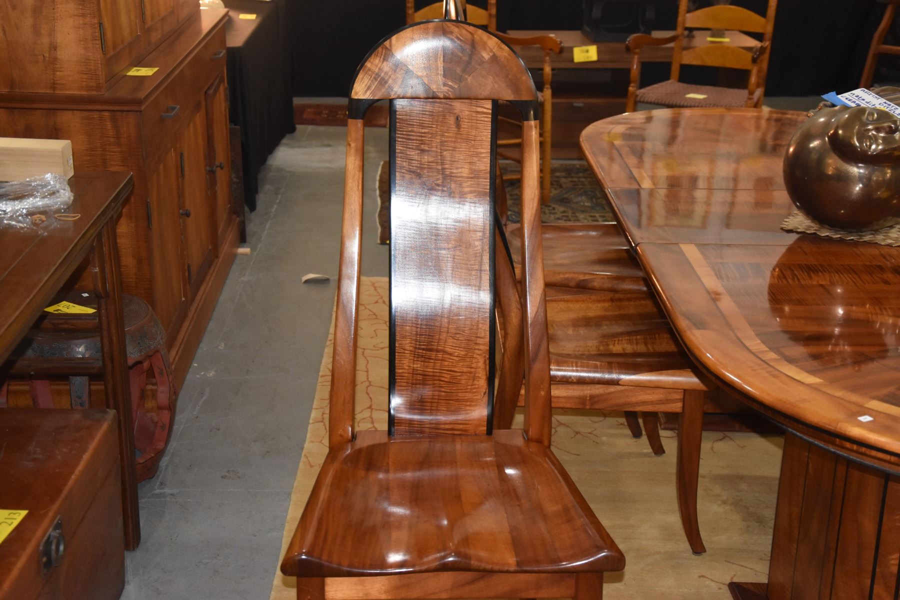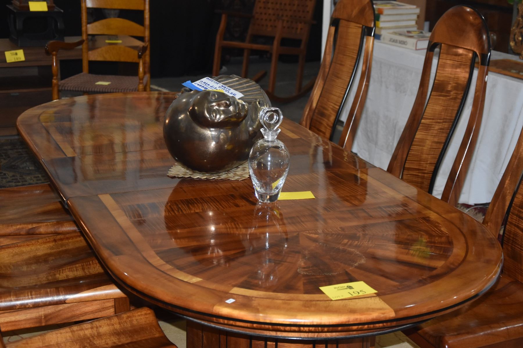 KOA & EBONY INLAY DINING TABLE W/1 LEAF & 6 CHAIRS BY DAVID LEFELL (94" X 39 1/2") (8 PCS)