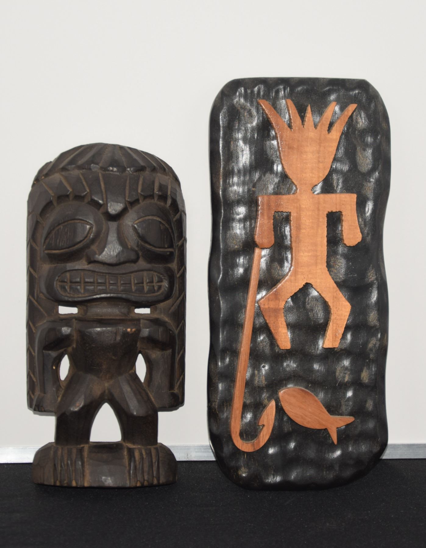 KOA FISHERMAN PLAQUE BY KAHAWAI & HAND CARVED HAWAIIAN TIKI (2 PCS)