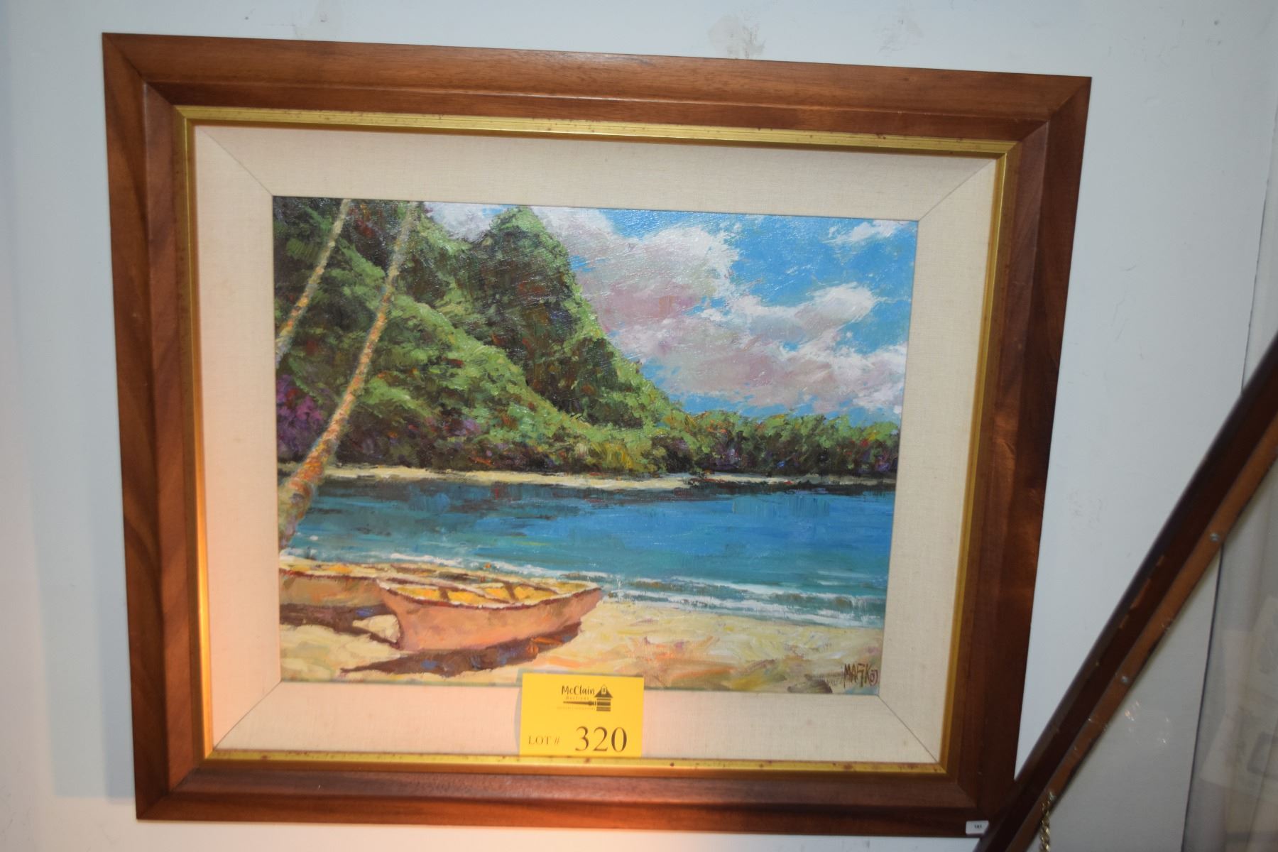 KOA FRAMED OIL ON CANVAS, "BALI HAI"; SIGNED MARKO MAVROVICH (29" X 25")