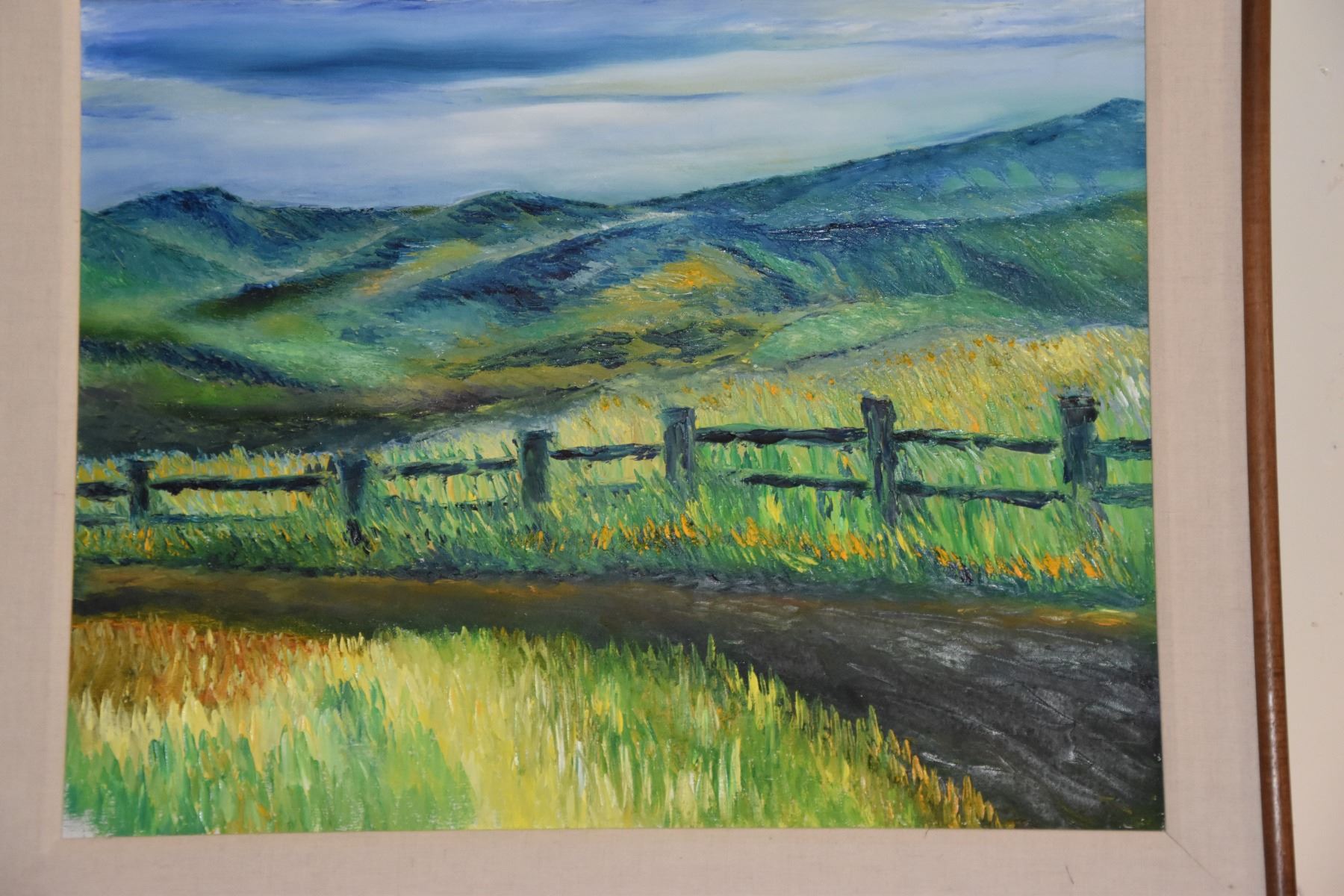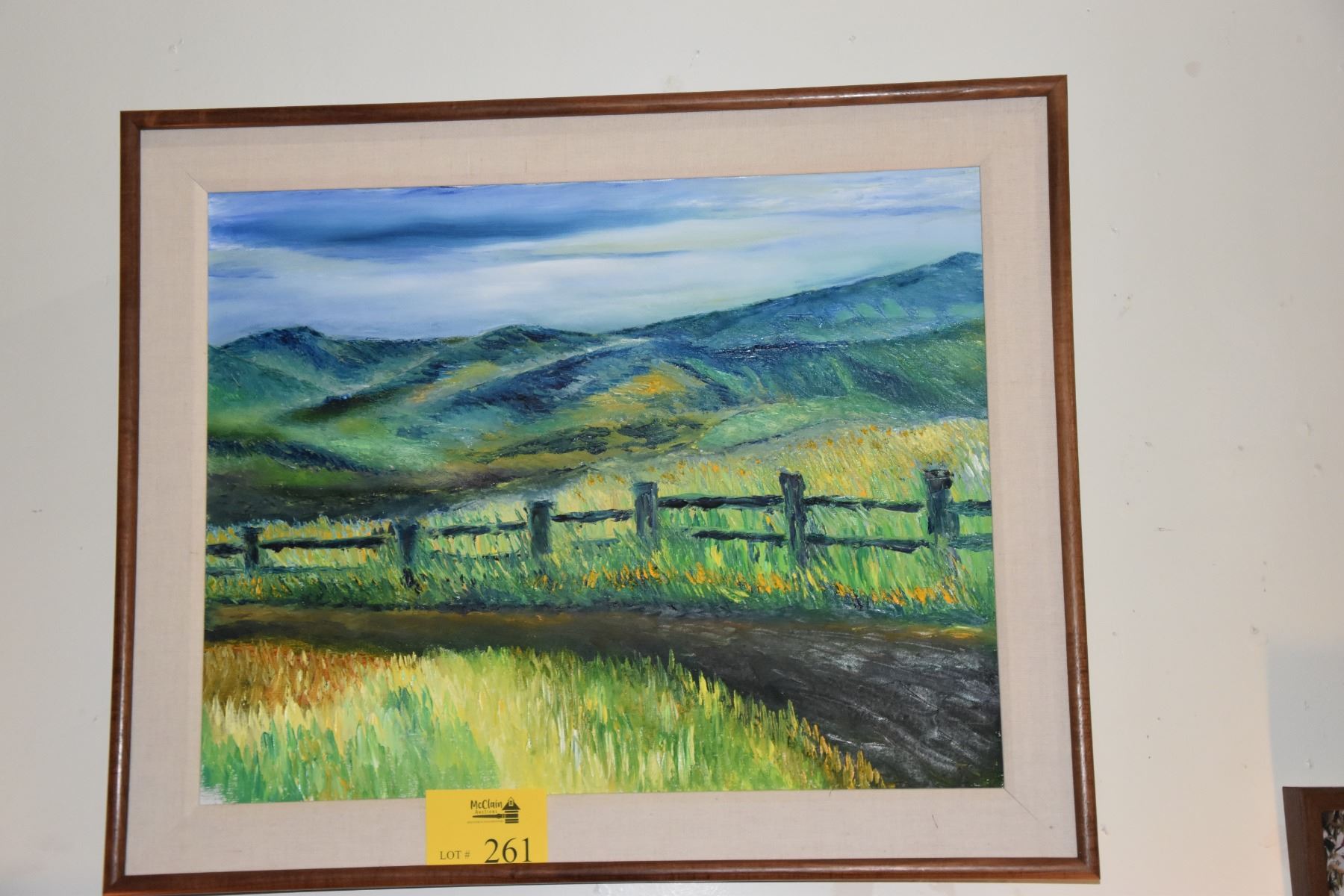 KOA FRAMED OIL ON CANVAS, COUNTRY SIDE (33 1/2" Z 27 1/2")
