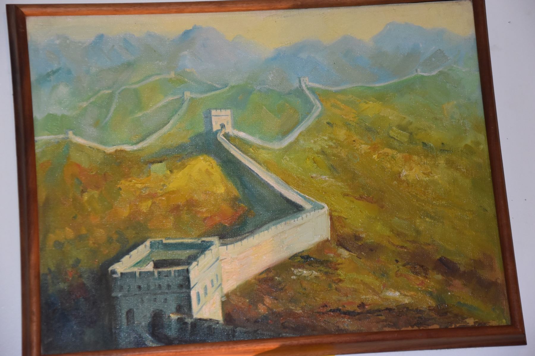 KOA FRAMED OIL ON CANVAS, GREAT WALL OF CHINA; SIGNED (25 3/4" X 19 1/4")