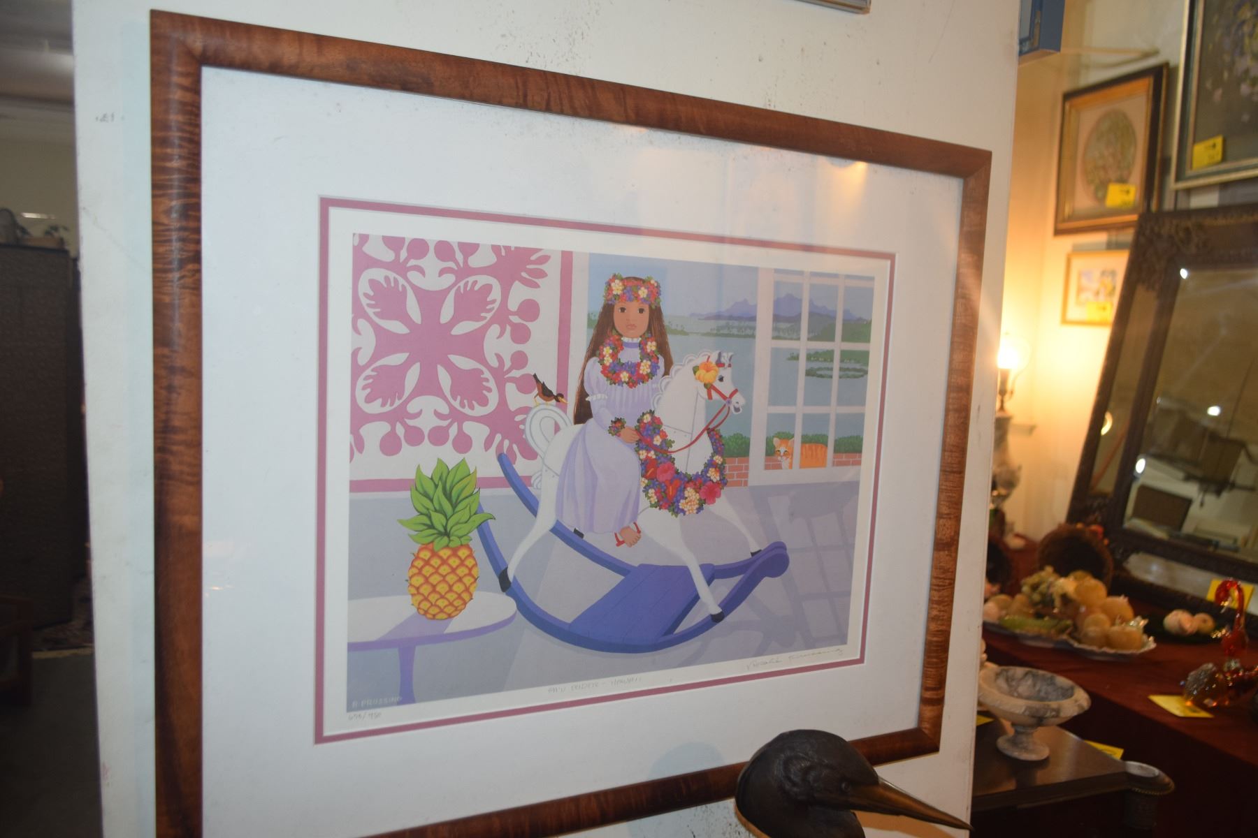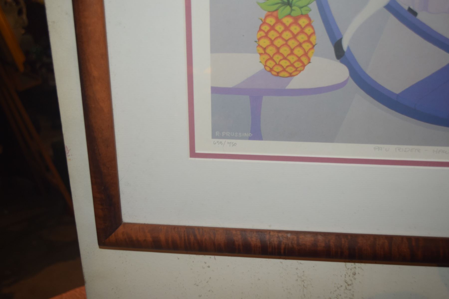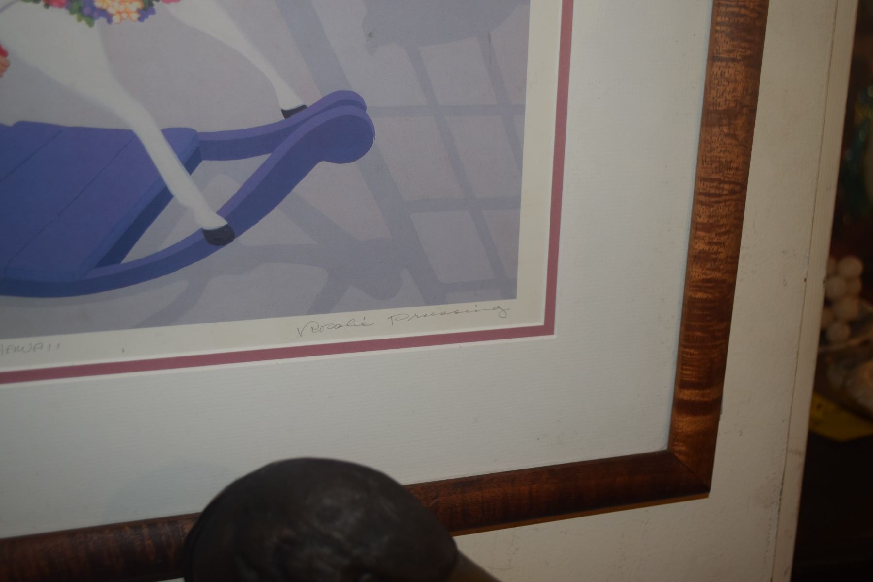 KOA FRAMED PRINT, "PA'U RIDER - HAWAII"; SIGNED ROSALIE PRUSSING (655/750 (24 1/2" X 20 1/2")