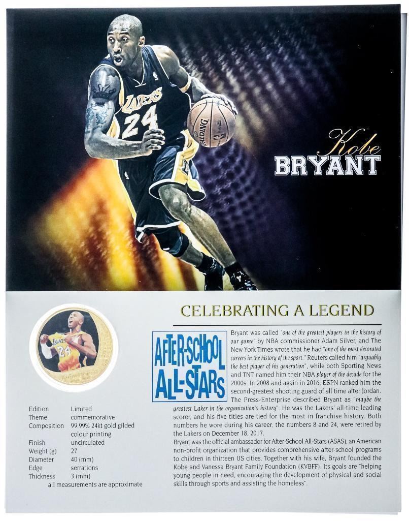 KOBE BRYANT - 24kt Gold Gilded Medallion w/ Giclee Art Card Display.