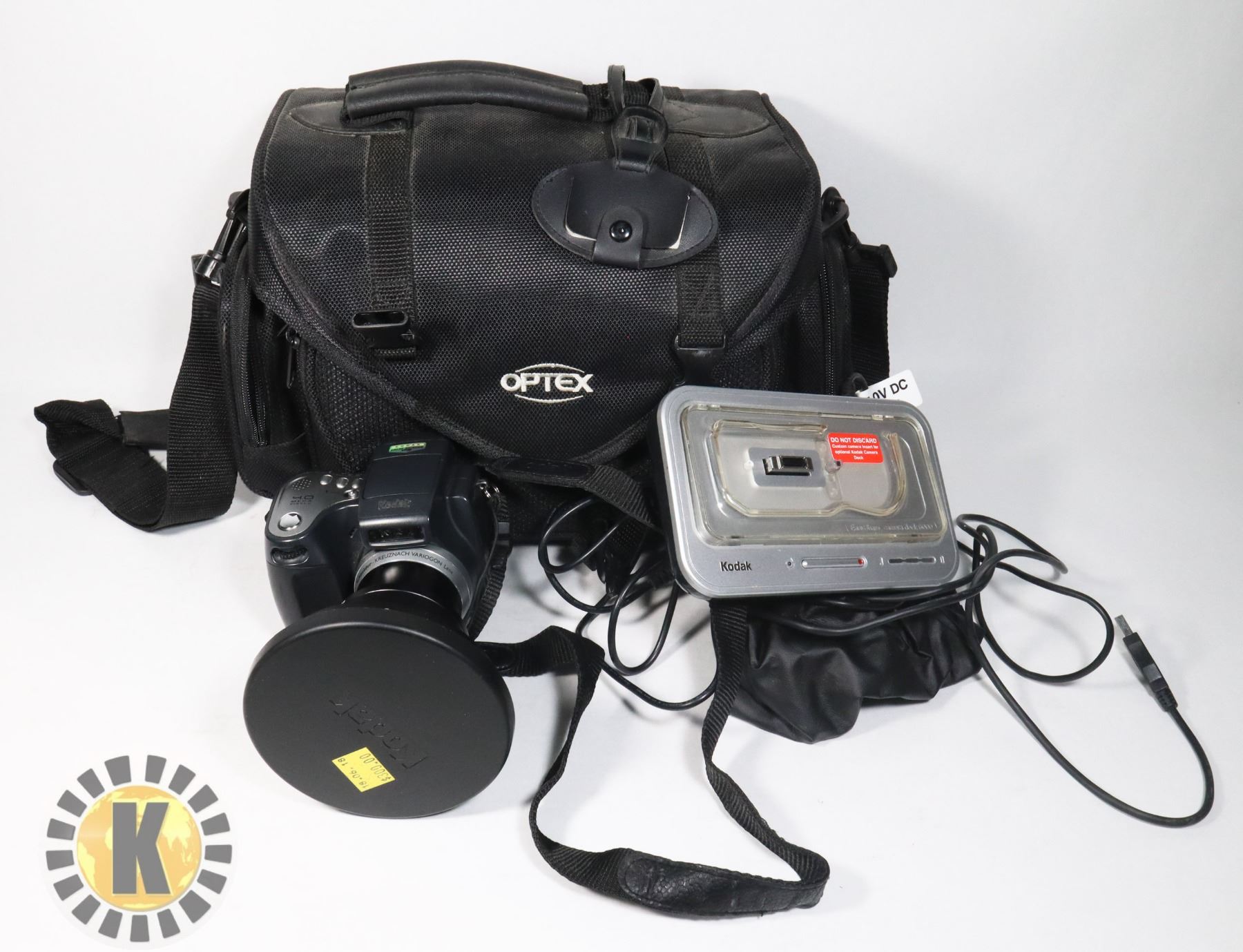 With BAG. INCLUDING KODAK LENS 44.2MM TO 55MM, CAMERA DOCK 6000 WITH CABLE, TESTED TO POWER ON, BATTERY LIFE UNKNOWN***ITEM(S) LOCATED IN LETHBRIDGE ALBERTA. SMALL ITEMS ONLY ARE AVAILABLE FOR FREE TRANSPORT TO EDMONTON OFFICE (READ AUCTION DETAILS FOR MORE INFORMATION)