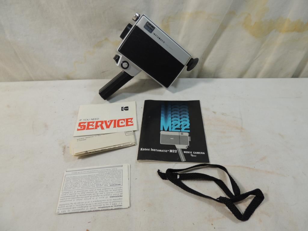 KODAK INSTAMATIC M22 MOVIE CAMERA. SUPER 8 MOVIES, MOVIE CAMERA, VINTAGE ELECTRONICS AS SHOWN SEE PHOTO FOR MORE DETAILS.