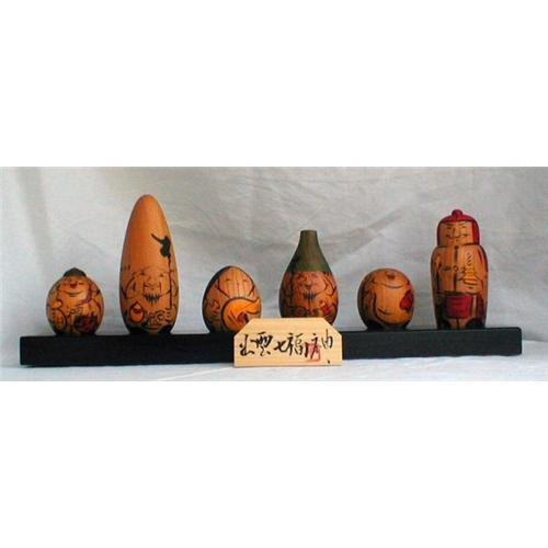Each doll is made of carefully selected wood, individually painted with details to show off the grain on each doll. The tallest figure is 4.5 inches. Additionally, the dolls come with a black wooden stand, which is 14.5 inches in length, and signature plaque. Also included are the original wrapings and original decorative paper box.