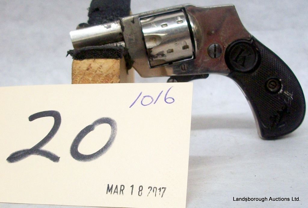 PROHIBITED, REVOLVER, 22 SHORT, 30MM BARREL, SN K167. GRIPS GOOD, NICKEL PLATING HAS HEAVY PITTING AHEAD OF CYLINDER, BORE PITTED. TRIGGER MECHANISM WORKS.