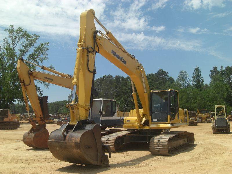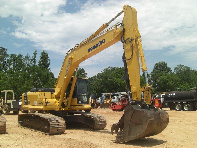 KOMATSU PC220LC-8 HYDRAULIC EXCAVATOR, S/N A88132 (06 YR) 10'2" STICK, 54" BUCKET, HYD THUMB, 32" TBG, ECAB W/AIR, PLUMBED, METER READING 3,350 HRS
