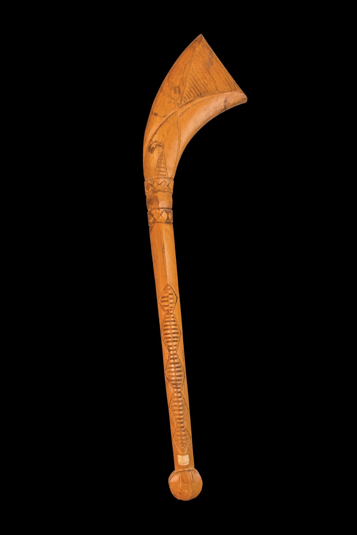 (1960s) A super rare George Nakashima design for Armet & Davis in their outfit of the famed, KONA-KAI flagship restaurant for the Philadelphia, PA Marriott hotel. Created by Cass carving, Los Angeles, these patterns were purchased by OA for use although they were never employed in production. 40"x9". VG+ with typical wear.
