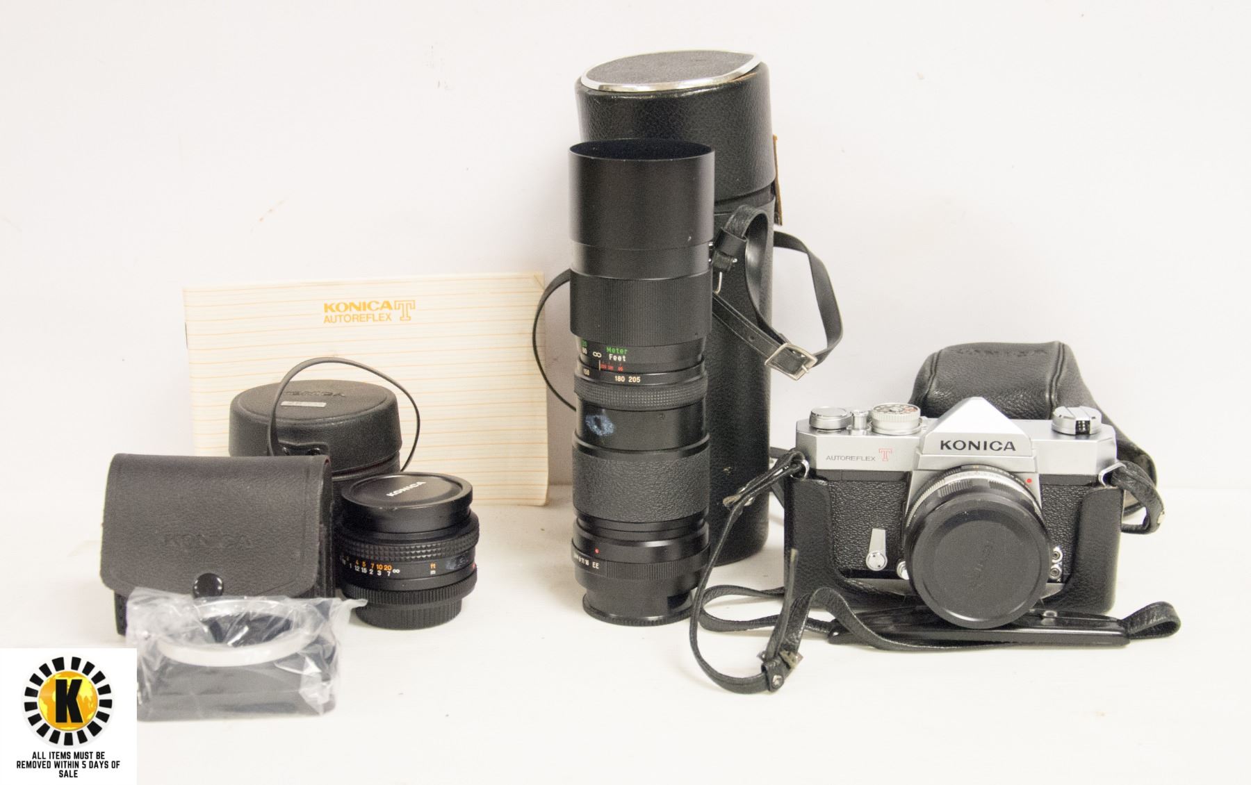 KONICA AUTOREFLEX T CAMERA AND LENSES