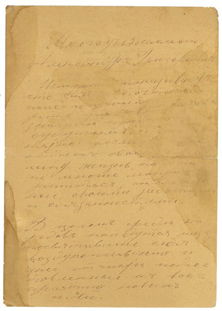 (1857 - 1935) Pioneering Russian scientist and rocket designer who laid out the basic principles of modern space flight. A.L.S. 2pp. 8vo., [n.p.], 1891, in Russian, untranslated. Dampstain affects 30% of the recto, and left and lower-right margins of verso, signature bold and unaffected. Even toning overall. Worthy of further research. With letter of authenticity issued by the International Charitable Foundation for Support of Russian Cosmonauts.