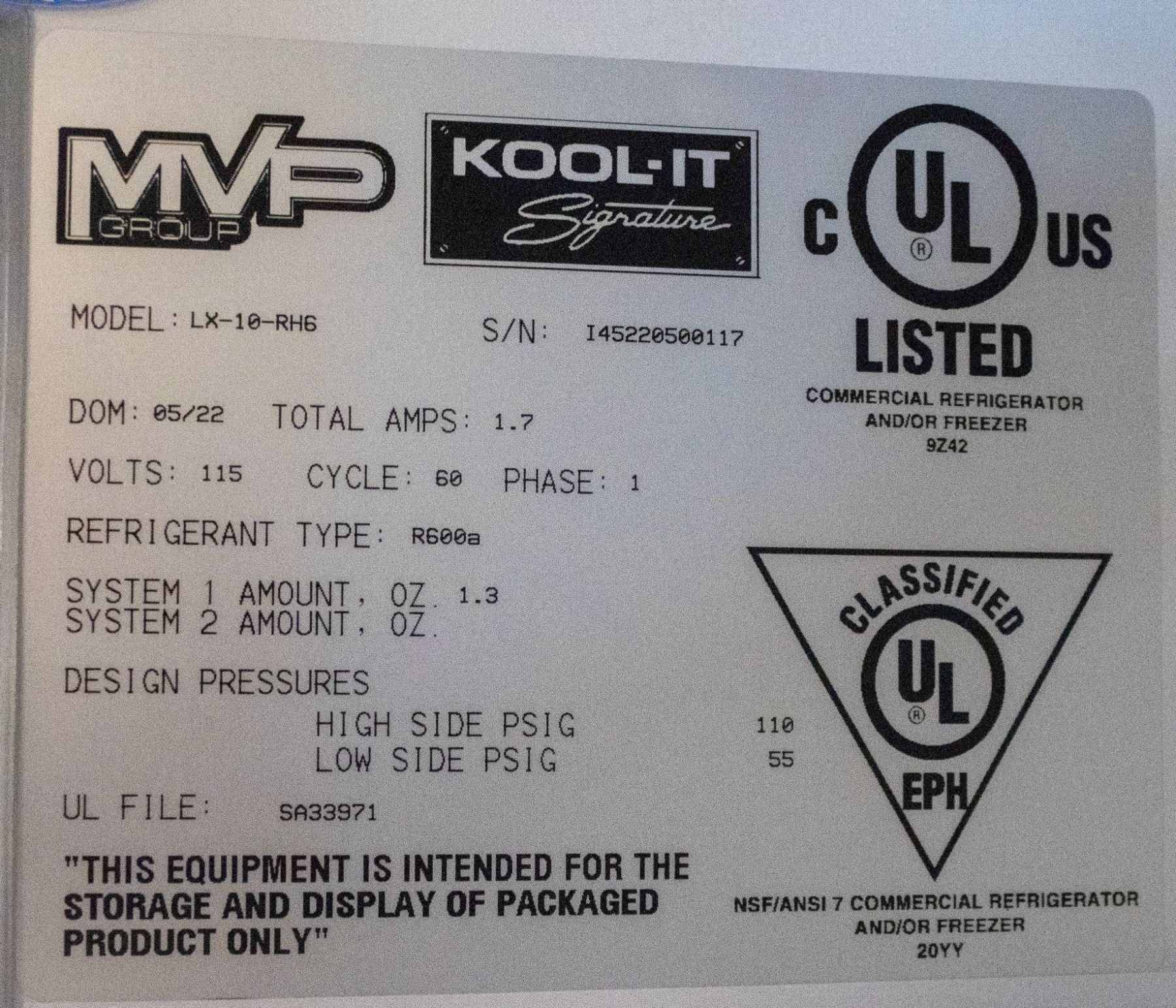 KOOL-IT SINGLE GLASS DOOR COOLER-RIGHT HAND HINGE