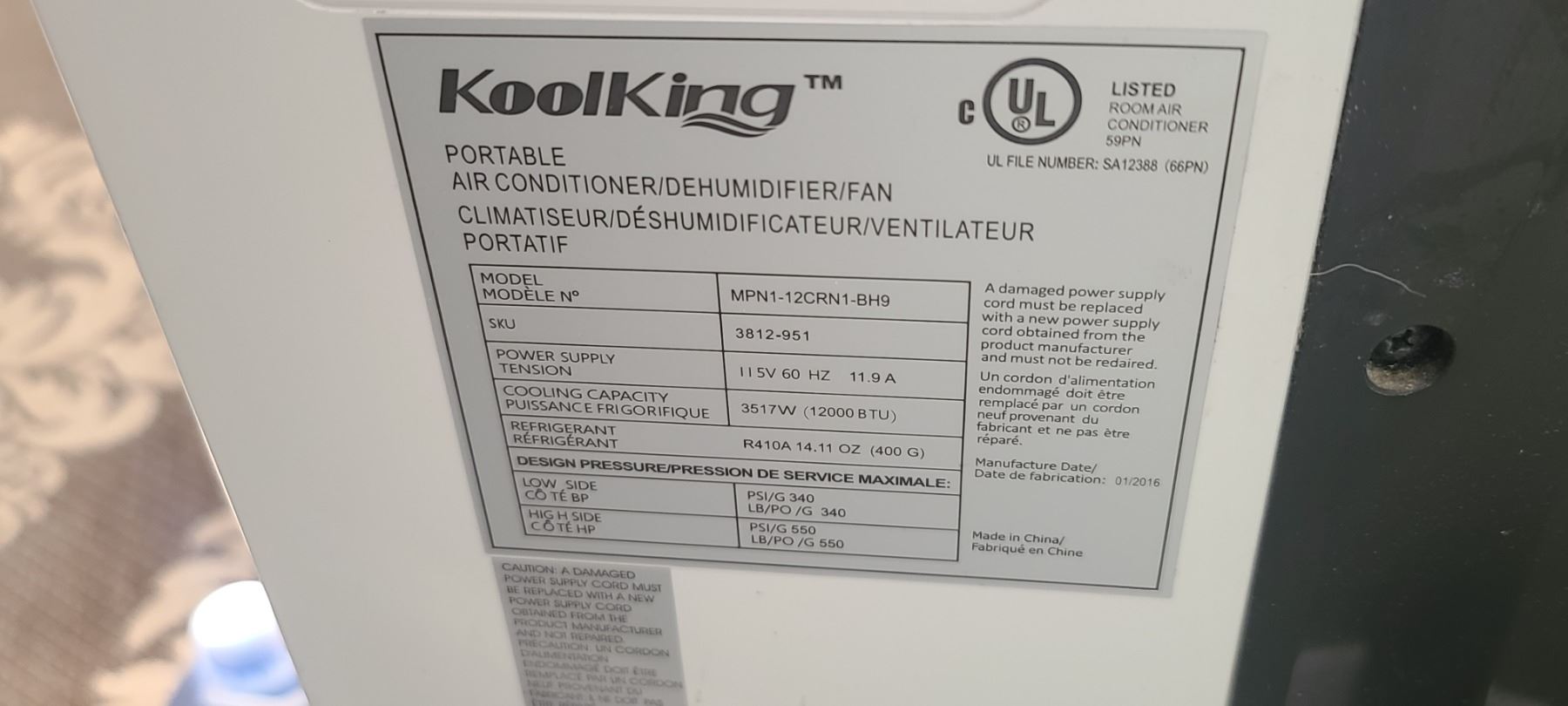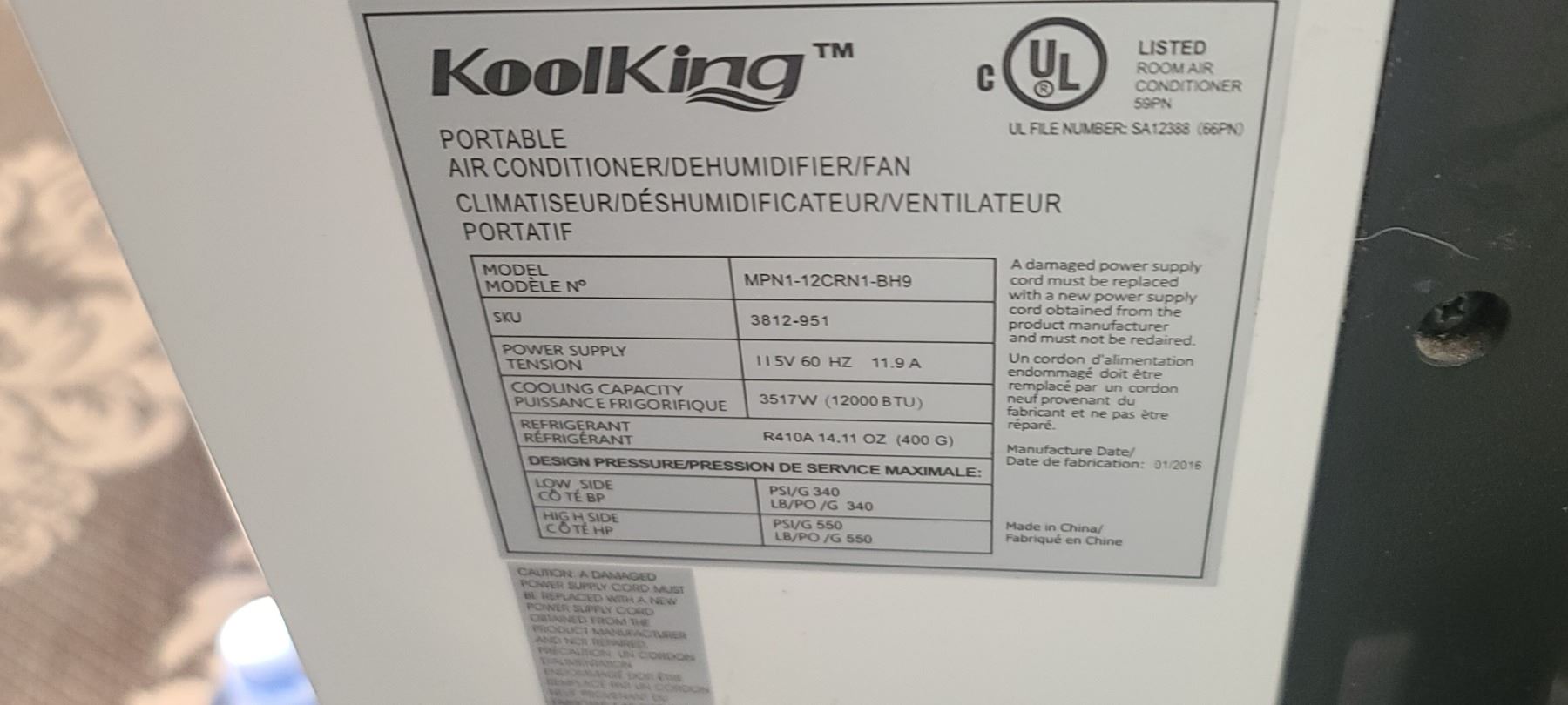 KOOL KING PORTABLE WINDOW A/C COMES WITH REMOTE AND LOT OF BOTTLES