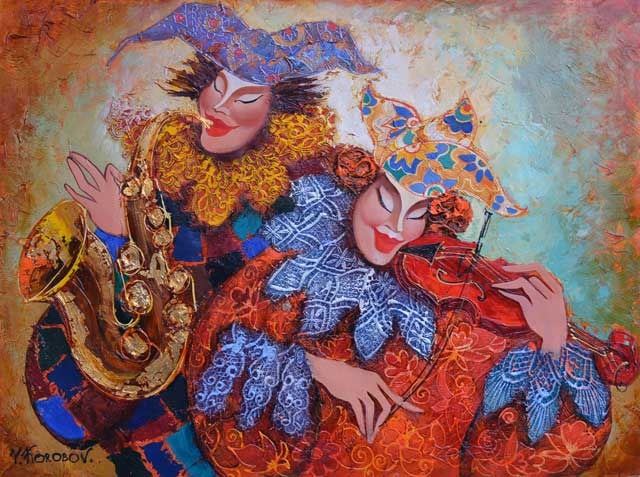KOROBOV ** HAPPY MUSIC ** ACRYLIC. Artist: Yana Korobov (b. 1972) - Title: Happy Music - Medium: Original Acrylic on Canvas - Signature: This one-of-a-kind work is hand-signed by the artist at the bottom of the image - Image Size: Approximately 29.75 inches x 39.75 inches - Framed: Unframed on Unstretched Canvas - Biography: Yana Korobov was born in the Ukraine in 1972. She studied at her local High School of the Arts in Kharkiv. She then went on to study at the Art & Industry College and the Sloboda State University in Kharkiv. - She graduated as an art teacher from the State Art College in Kharkiv. In 2003 she immigrated to Israel. She is a young and upcoming artist whose work has been admired worldwide. Her artwork has recently been exhibited in Israel, the United Stated and Europe. - Warranty: Item GUARANTEED to be as described