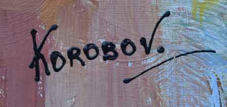 KOROBOV ** THE PLAYERS ** ACRYLIC. Artist: Yana Korobov (b. 1972) - Title: The Players - Medium: Original Acrylic on Canvas - Signature: This one-of-a-kind work is hand-signed by the artist at the bottom of the image - Image Size: Approximately 29 inches x 29.75 inches - Framed: Unframed on Unstretched Canvas - Biography: Yana Korobov was born in the Ukraine in 1972. She studied at her local High School of the Arts in Kharkiv. She then went on to study at the Art & Industry College and the Sloboda State University in Kharkiv. - She graduated as an art teacher from the State Art College in Kharkiv. In 2003 she immigrated to Israel. She is a young and upcoming artist whose work has been admired worldwide. Her artwork has recently been exhibited in Israel, the United Stated and Europe. - Warranty: Item GUARANTEED to be as described