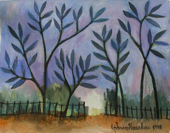 KOUAKOU **THE FIELD** SIGNED ORIGINAL ACRYLIC. Artist: Ephrem Kouakou - Title: The Field - Medium: Original Acrylic on Canvas - Signature: This one-of-a-kind work is hand-signed by the artist at the bottom of the image - Image Size: Approximately 23 ¾ inches 30 inches - Framed: Unframed - Details: This work comes with a Certificate of Authenticity - Biography: Artist Ephrem Kouakou, a native of the Cote d'Ivoire (Ivory Coast), has exhibited his work in the United States, France, Belgium and other nations. His paintings are representative of his strong spiritual-cultural development in his village in West Africa. His images are whimsical and evocative, filled with strong symbolism and characterizations. They speak of religion, fertility, introspection of the soul, family, community, tradition and evolution. Ephrem tells of having walked from his village to Algiers because of his strong calling to be an artist. From Algiers he secured passage to France where he managed to study at the The Ecole des Beaux Arts. His paintings are a blend of African and Western imagery in a rapturous dance of color and line that have as much to do with music as they do plastic arts. His bold folk art, inspired by his native culture, includes themes of fertility, brotherhood, the strength and the power of women, passion for life, and the understanding of sacrifice, reflection, and the inward journeys. His work transcends tradition and speaks of universal ideals, blending proud ancestry with modern culture. His canvases borrow from familiar archetypal images but the artist twists them into something contemporary and spiritual and very much his own iconography. Ephrem Kouakou's work can be found in galleries in New York City and Washington, DC, as well as the Metropolitan Museum of Art and The Smithsonian Museum of African Art. - Warranty: Item GUARANTEED to be as described