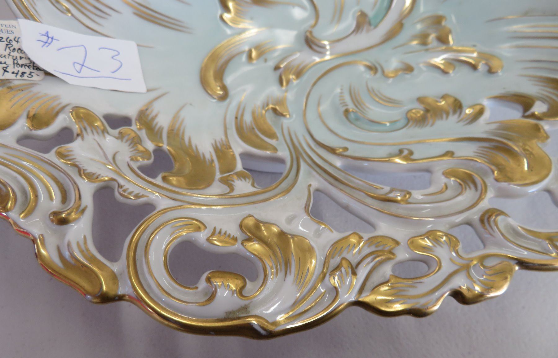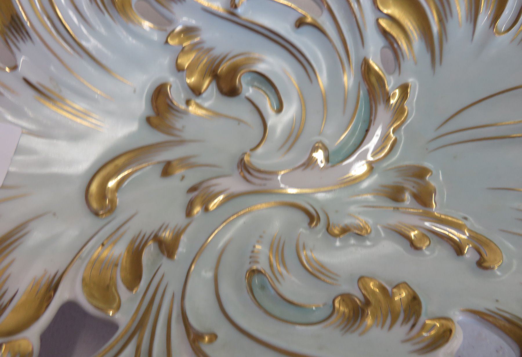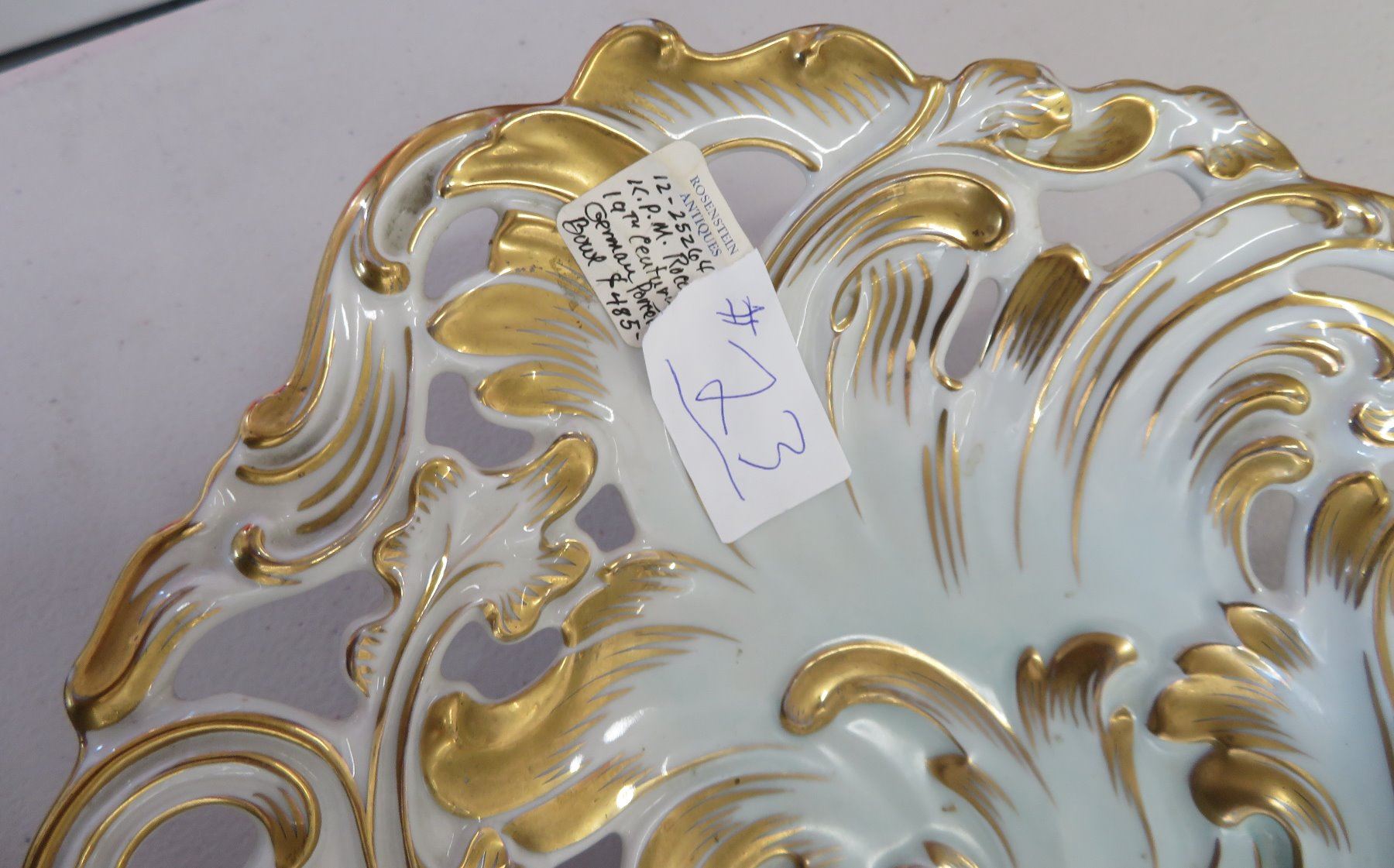 KPM German Bowl, 19th Century-Rococo. Made of gilded porcelain, the item measures 12" x 9" x 2 1/2". Germany. Condition: Good, see images. Shipping: $45.00 USA estimate only, w/insurance and signature.