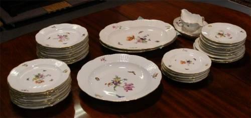 1 KPM PARTIAL DINNER SERVICE 33 pieces including 3 serving platters, 9 pcs with chips, otherwise excellent late 19th century estimate 800-1200