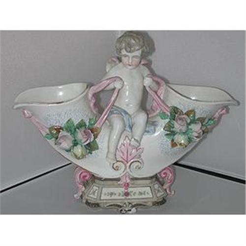 <tr><td>Title:KPM crossed swords two sided vase w/cherub</td></tr>
