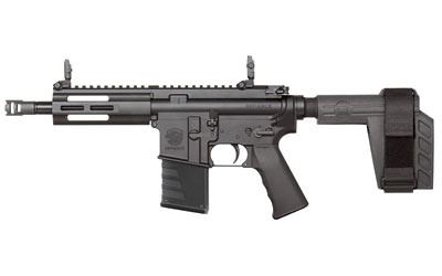 The Kriss Defiance DMK22P-SB features forged 7075-T6 aluminum receivers, the SB Tactical SBX-K Stabilizing Arm Brace, a Defiance pistol Grip, QD rear sling swivel, low profile flip up sights, bolt lock, forward assist, and full size dust cover. It is compatible with most MIL-SPEC AR-15 trigger kits and charging handles.