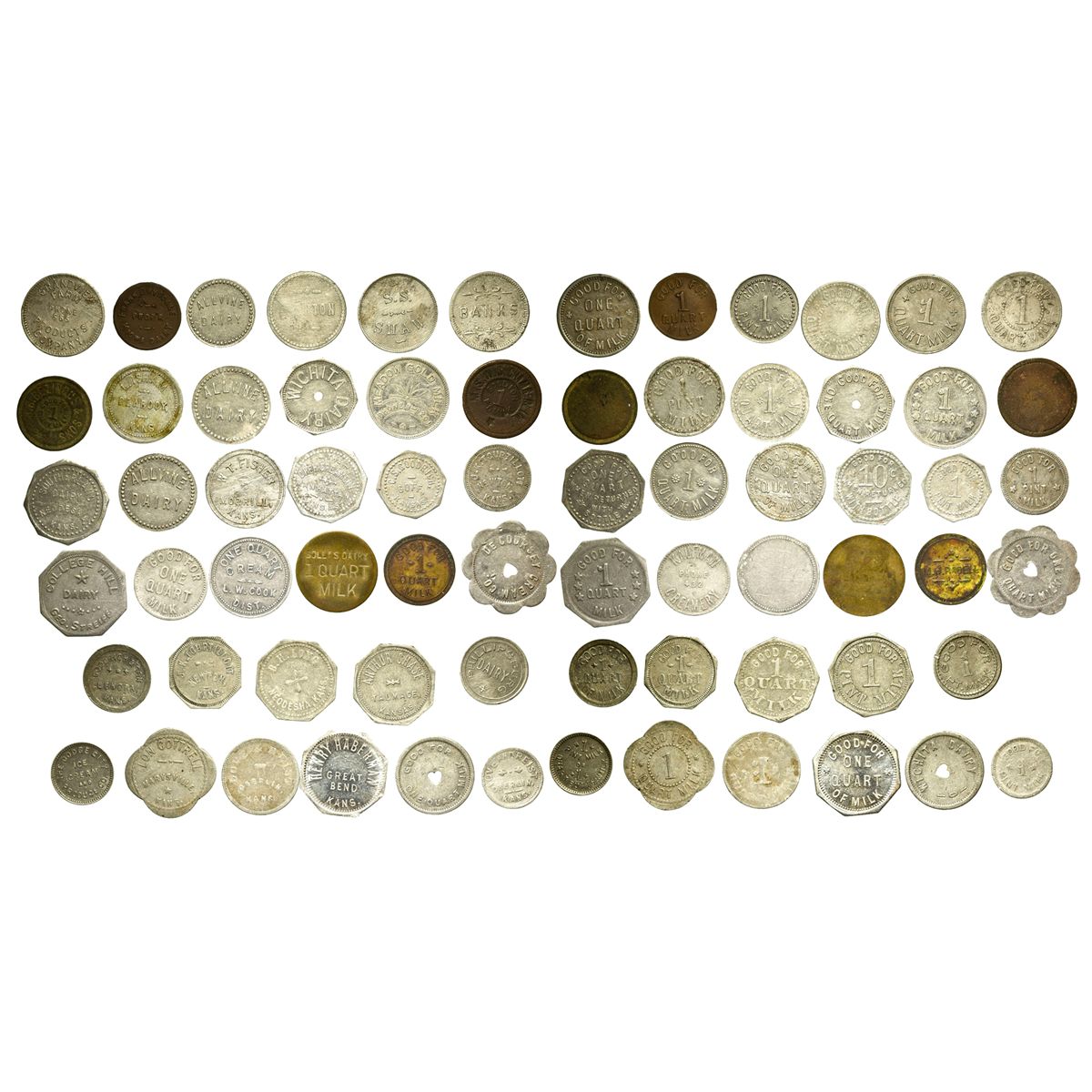 Lot of 35 dairy tokens including Banks Dairy, College Dairy, Meadow Gold Milk, DeCoursey Cream Company and Arthur Chase of Talmadge and many more. All are in very good to excellent condition.