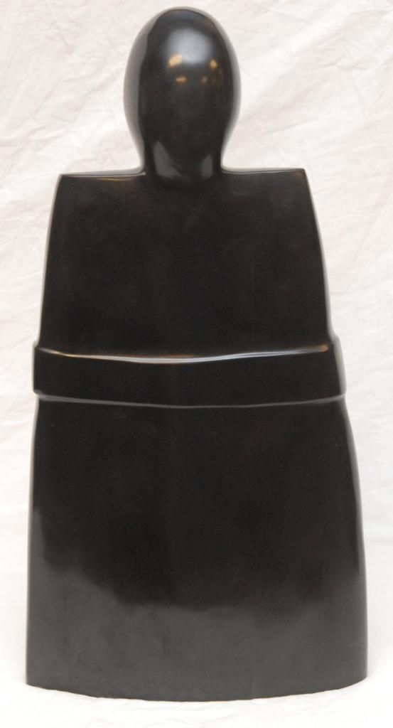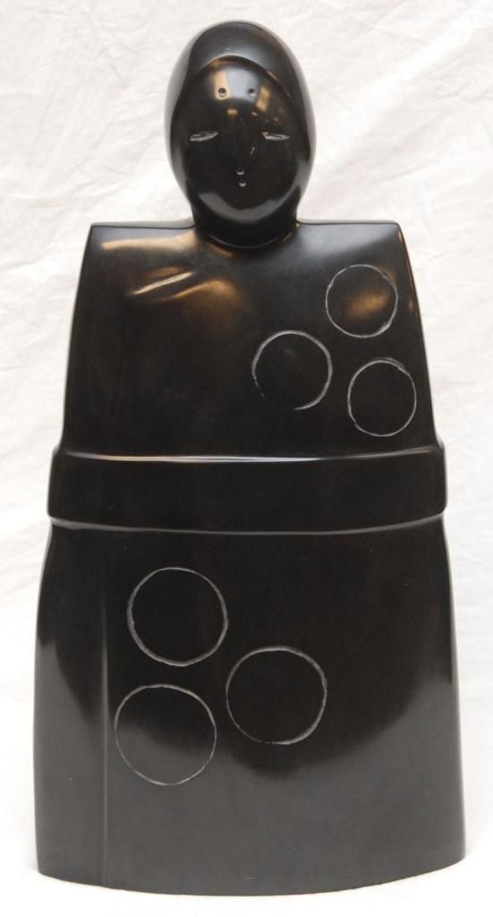Large black marble sculpture depicting a torso with etched circles design. Signed to bottom and numbered 64/200. Measures 25" height x 13" width (63.5cm x 33cm). Total weight of 22.56 kilograms.