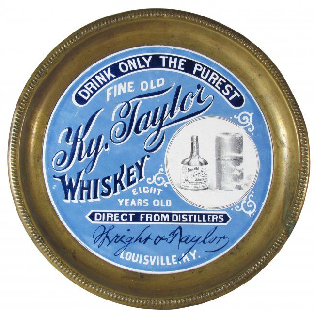 KY. Wright & Taylor Porcelain and Brass Serving Tray. Very minor wear otherwise excellent condition. 12 inch diameter.