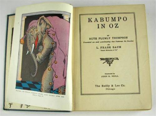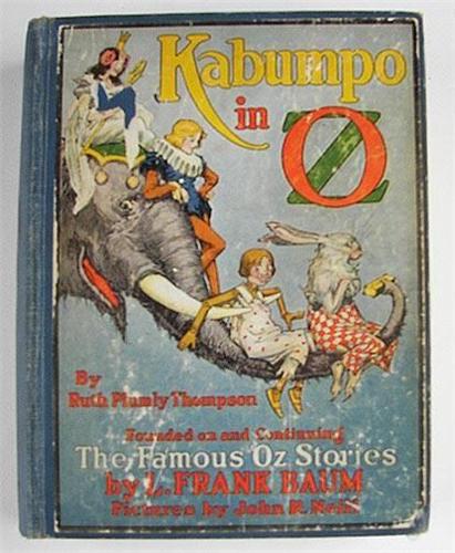 Kabumpo In Oz, by Ruth Plumly Thompson, founded on and continuing the Famous Oz Stories by Frank Baum, illustrated by John R. Neill, published by The Reilly & Lee Co., of Chicago, 1922, has all 12 color plates (color plate on page 129 is damaged and has amateur old tape repair) from the Estate of Charles Bunnell, Condition: Good, cover wear, inside page missing, yellowed page edges, front end page missing, no dust jacket