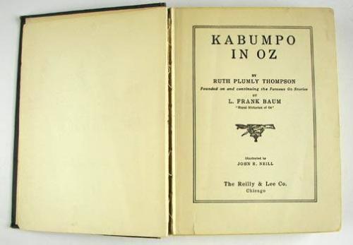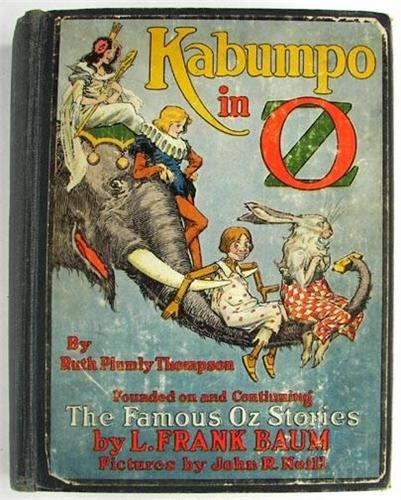 Kabumpo In Oz, by Ruth Plumly Thompson, founded on and continuing the Famous Oz Stories by Frank Baum, illustrated by John R. Neill, published by The Reilly & Lee Co., of Chicago, 1922, from the Estate of Charles Bunnell, Condition: Fair, cover wear, inside page missing, yellowed page edges, spine detached, one slick illustration page detached, no dust jacket