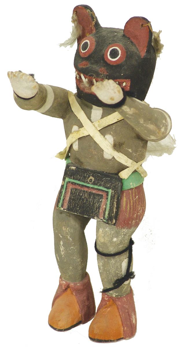 Circa 1930, Rare old hand carved Hopi cottonwood root Ogre kachina - all original. 10-1/2"