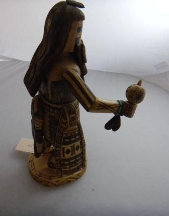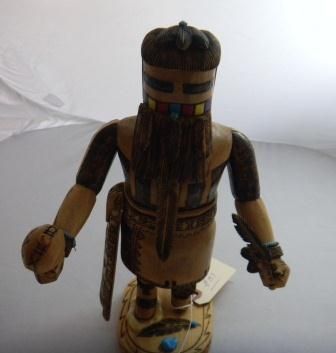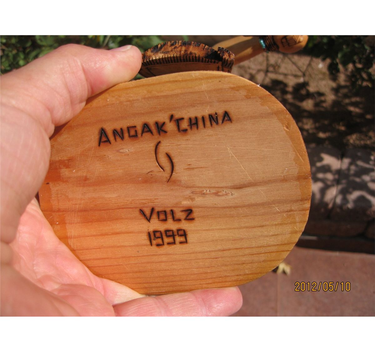 Kachina Doll, Painted Wood, Burned. Signed by Voiz 1999. Shipping $15.00. Foot has been glued.