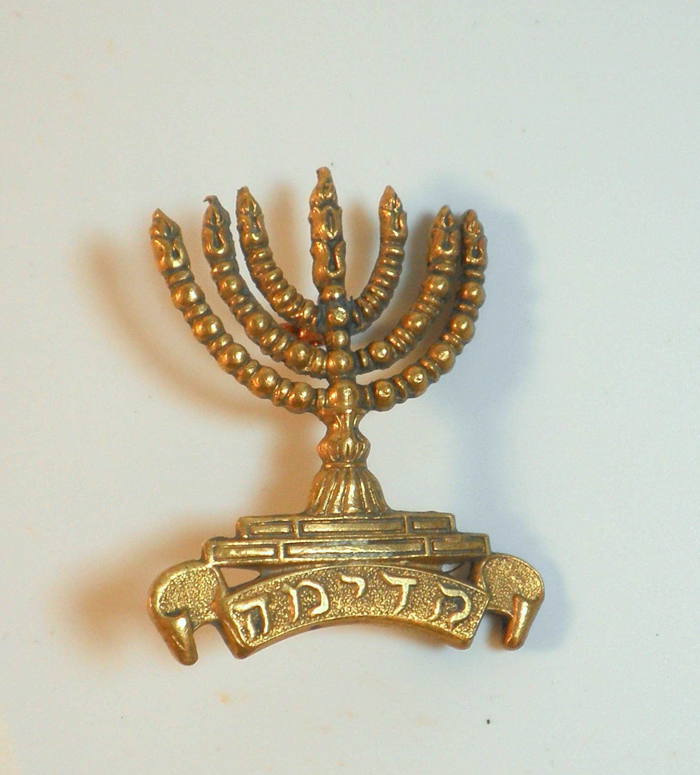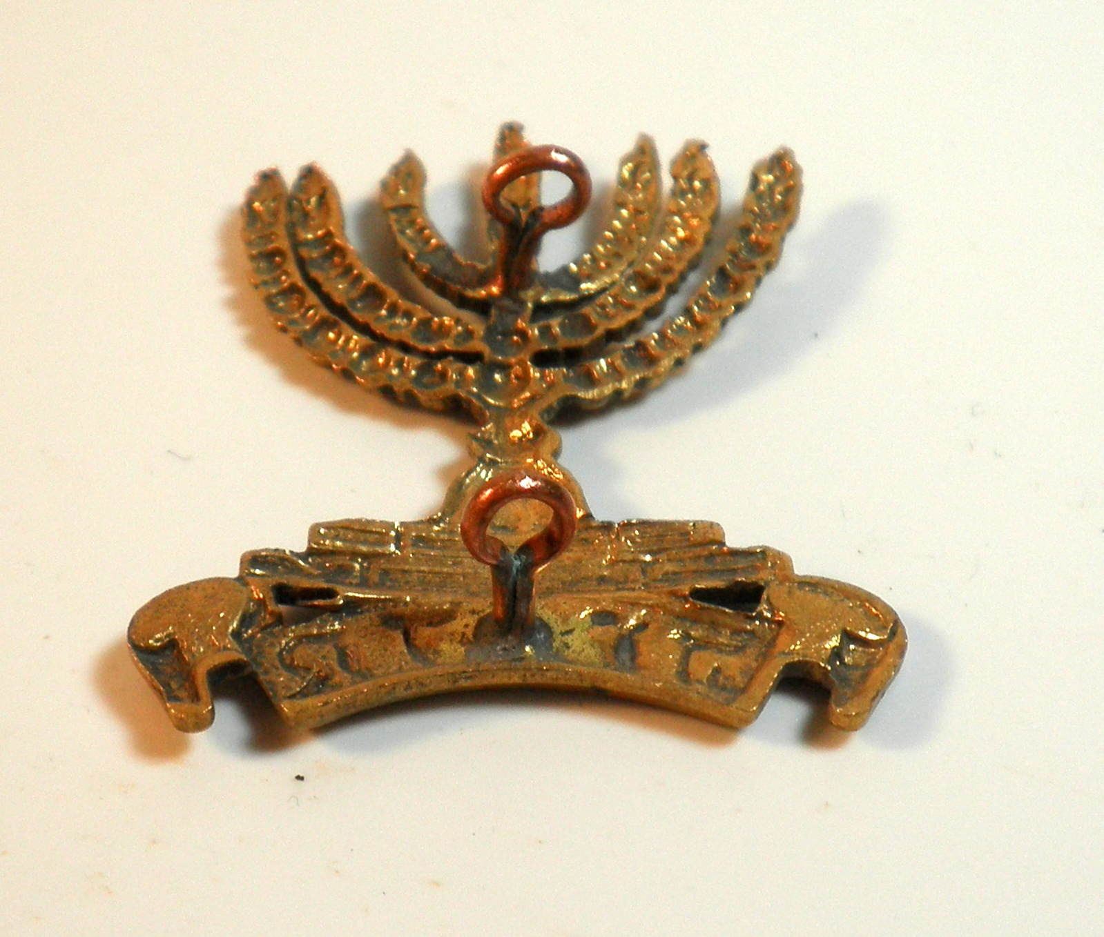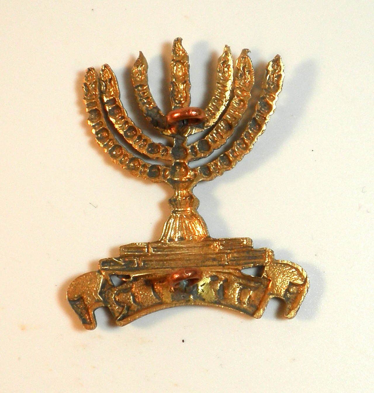 Kadima - The First Jewish Legion of Judah symbol with the Menorah and the inscription 'Kadima', 1917-21, in very good condition. Dimensions: 45X35 mm.