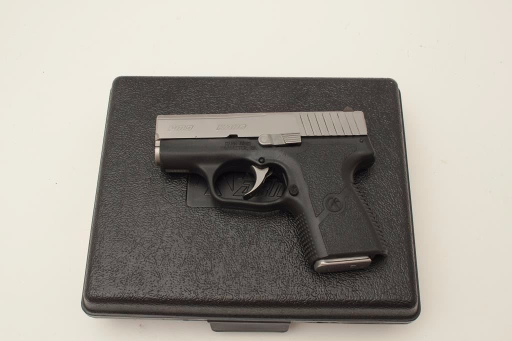 Kahr Arms Model PM9 DA semi-automatic pistol, 9mm caliber, 3” barrel, polymer frame, steel slide, S/N VC8346, in factory hard carry case with extra magazine and instructions. This gun is in overall fine condition showing minimal prior use. (Modern/PPT). Est.: $350-$700.