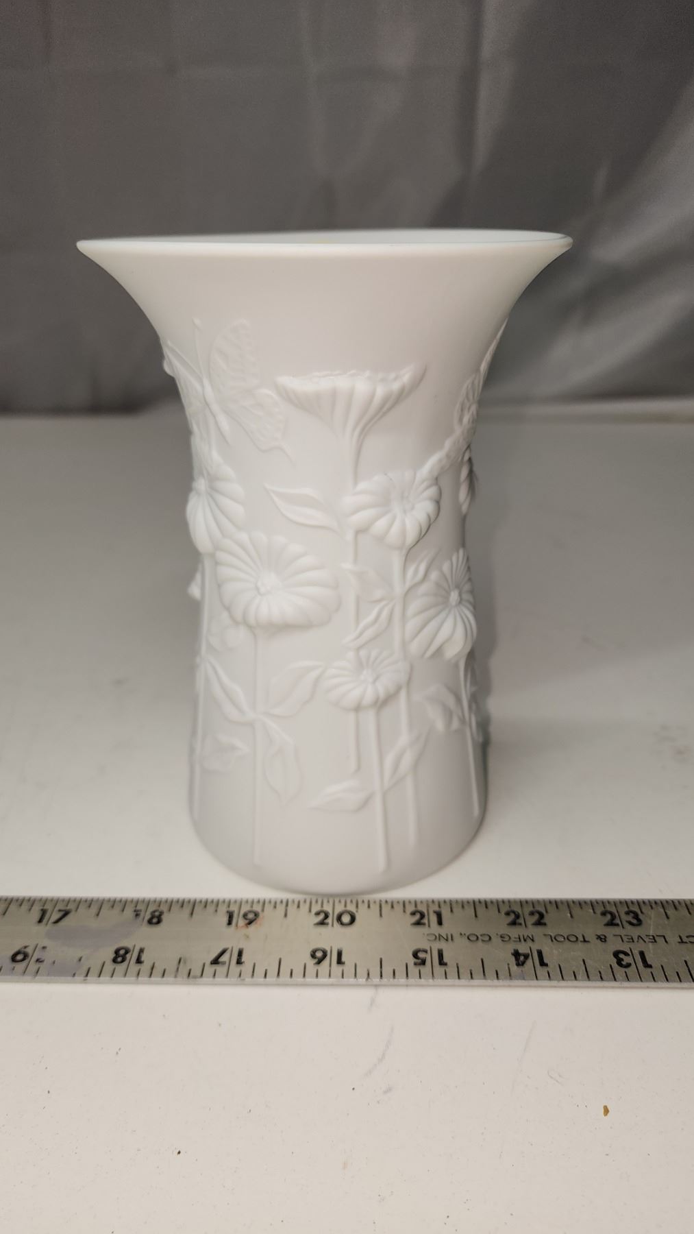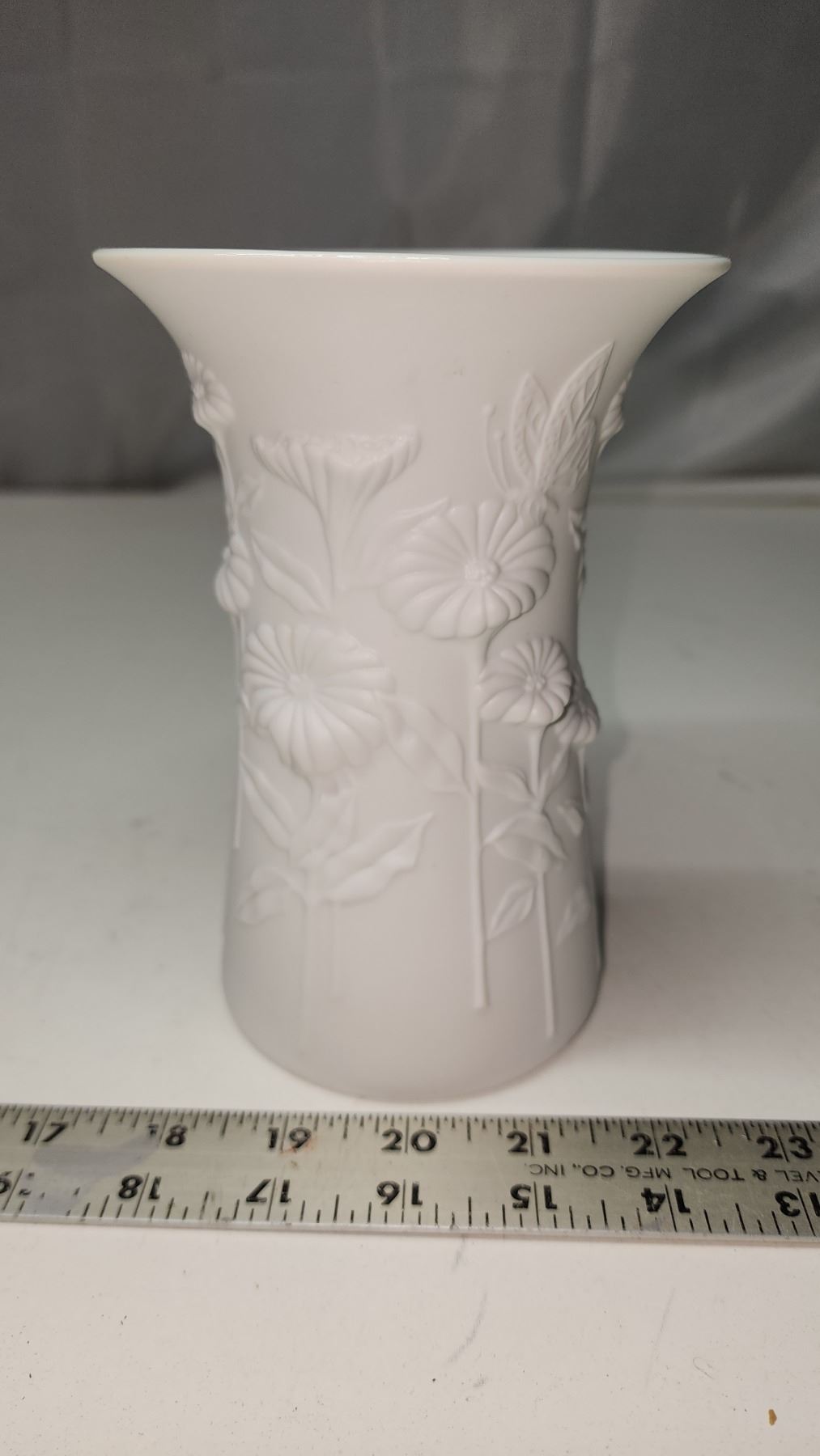 Kaiser Porcelain Bisque Vase - embossed design 1980's signed-numbered 6.5"