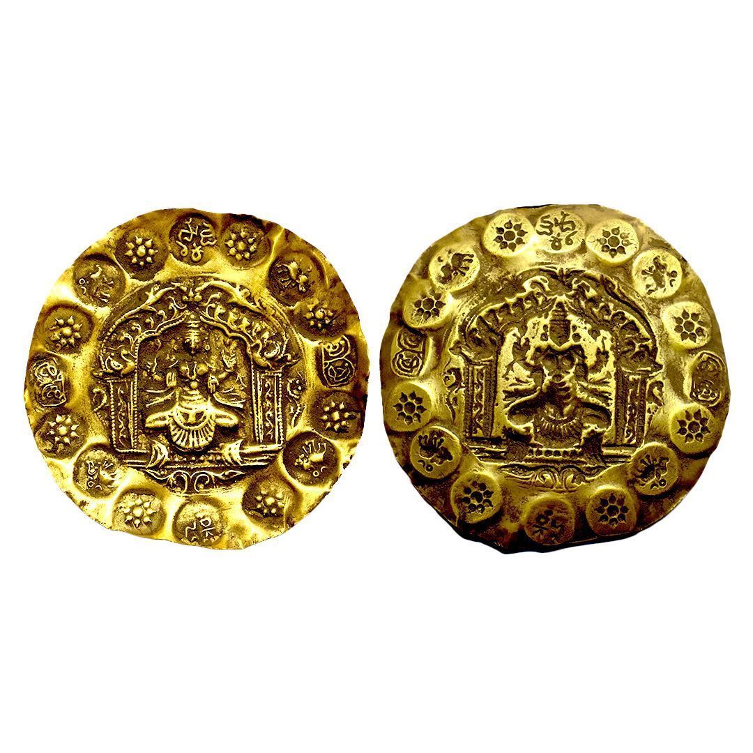 Kakatiyas of Warangal, Prola-II (1110-1158 CE), Gold PMC, 2 & frac12; Gold Gadyana, & lsquo;Goddess Lakshmi& rsquo; type, 9.96 gms, Total of 17 repousse punches elegantly hammered on the obverse of a Padma shaped circular flan. The central punch consists of the image of Goddess Lakshmi seated in Padmasana within an arched Garbhagriha, the sanctum sanctorum. She holds two lotus flowers in her upper hands which are the symbols of beauty, prosperity and fertility. The lower 2 hands are in the abhaya mudra of divine protection and the varada mudra of granting boon. The peripheral circumfluent punches consist of 2x Sri-Sri, 1x & #39;Mandalika& #39; and 1x & #39;Kesari& #39; all inscribed in Kannada, and 4 groups of Lotus-Boar-Lotus symbol punches interleaving the legend punches. The boar is shown walking facing right. Almost Uncirculated, extremely rare.