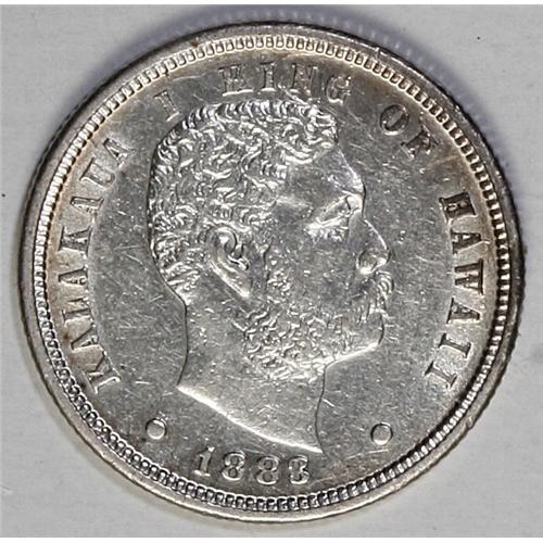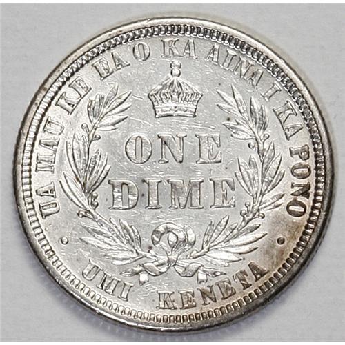 <B>Kalakaua Dime 1883, </B></I>KM3, lustrous XF-AU, lightly cleaned but quite attractive.